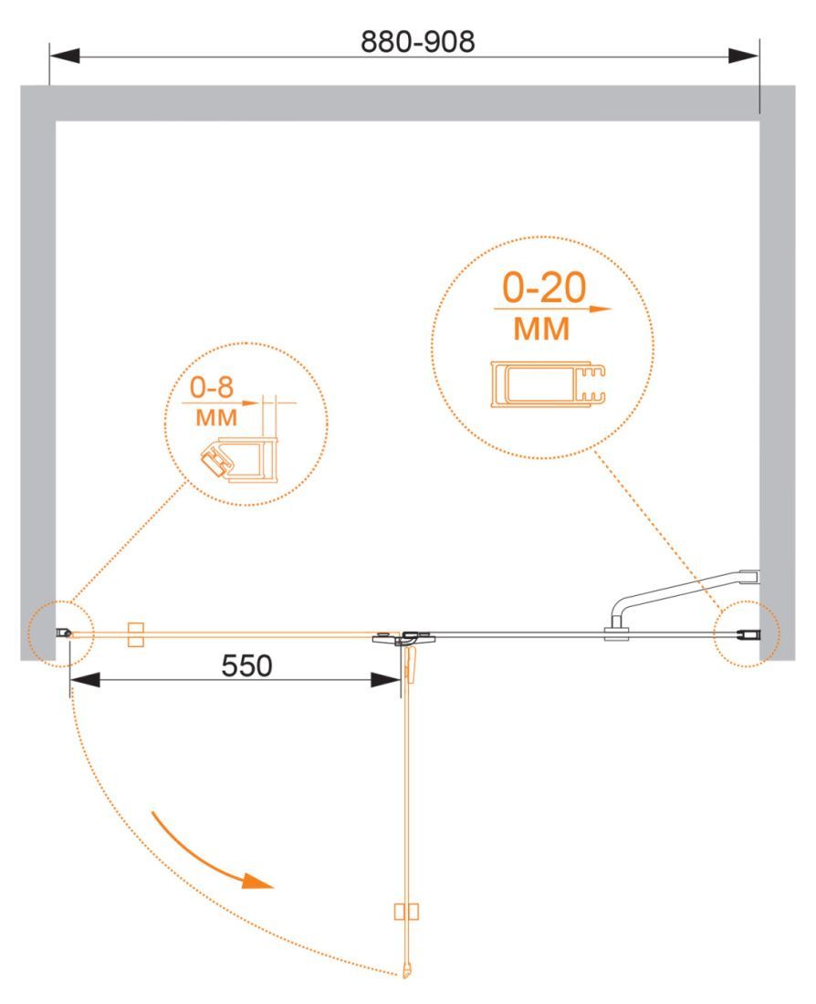—Душевая дверь Cezares BERGAMO BERGAMO-W-B-12-90-C-Cr-R 90х195 стекло прозрачное профиль хром глянцевый