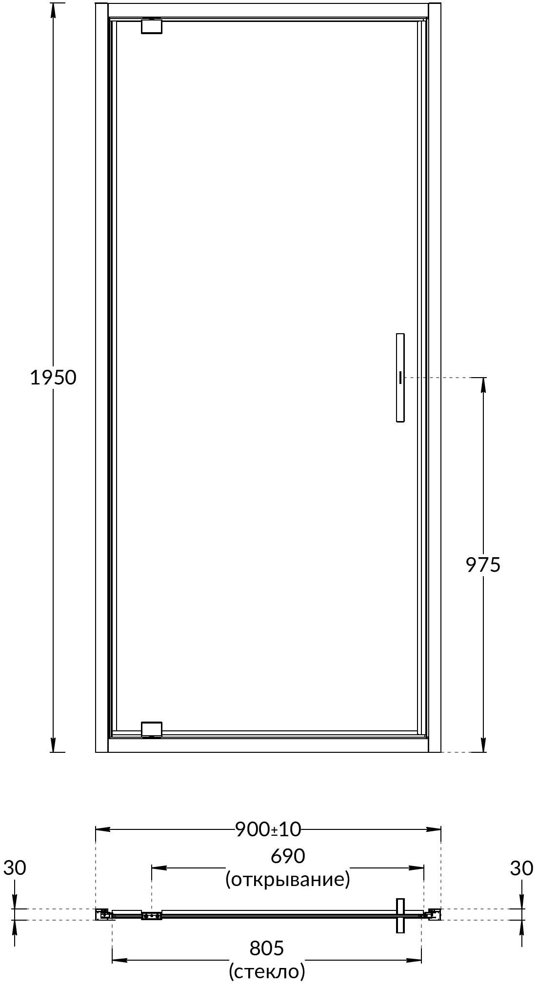 —Душевая дверь Kerama Marazzi VETRO VE.90.PD.BLK.M 90x195 стекло прозрачное профиль черный матовый