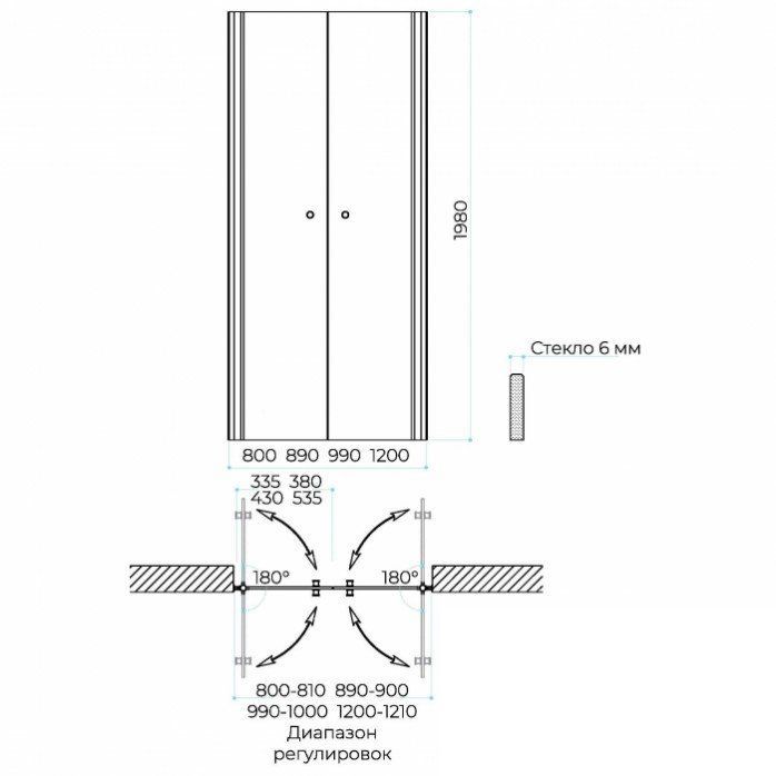 Стеклянная двустворчатая дверь на монопетлях - это стильный и современный элемент интерьера для ванной комнаты. Она изготовлена из прочного закаленного стекла, что обеспечивает ей долговечность и надежность. Монопетли позволяют створки плавно открываться и закрываться для удобства использования.