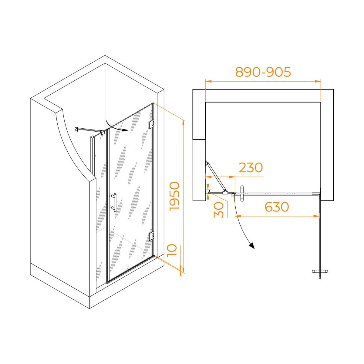 Благодаря водонепроницаемым стальным петлям эта душевая дверь обеспечивает надежное и водонепроницаемое ограждение. Общая высота 1950 мм гарантирует достаточно места даже для самых высоких людей. Благодаря классу герметичности 3 вы можете наслаждаться водонепроницаемым душем без протечек.