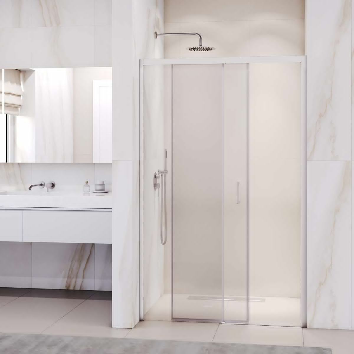 Раздвижная конструкция и регулируемый профиль обеспечивают легкое открытие и установку. Механизм на роликовых подшипниках создает плавное движение, облегчая уход и предотвращая накопление загрязнений.