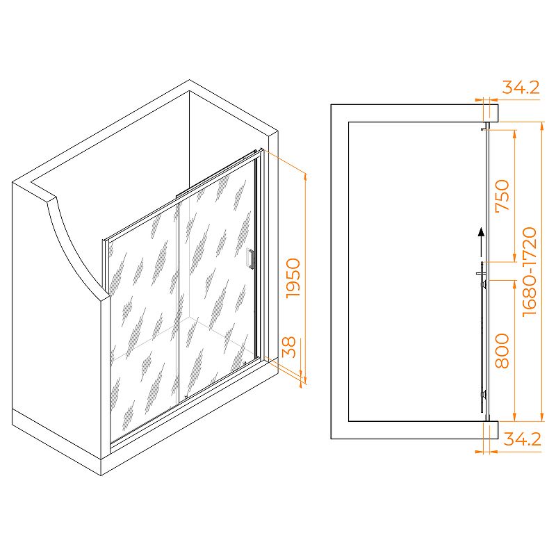 Толщина стекла двери составляет 6 мм и обладает высокой прочностью. Материал стекла выбран прозрачный, что позволяет сохранить пространственную свободу и прозрачность в ванной комнате. Цвет профиля двери выполнен в хромированном исполнении и добавляет глянцевый блеск интерьеру ванны.