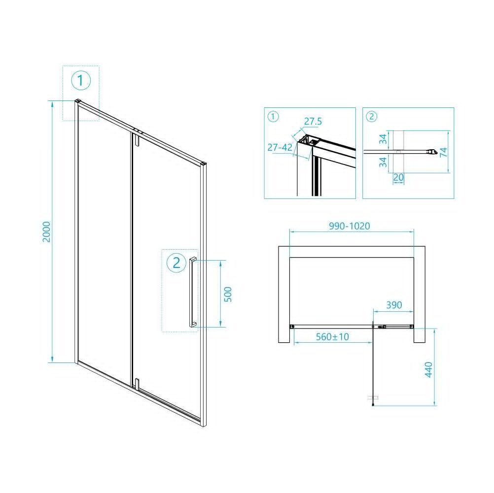 Одной из выдающихся особенностей этой душевой двери являются водонепроницаемые стальные петли. Эти петли специально разработаны для предотвращения утечки воды, обеспечивая сухой и комфортный душ. Эта душевая дверь общей высотой 2000 мм предлагает достаточно места для людей любого роста.