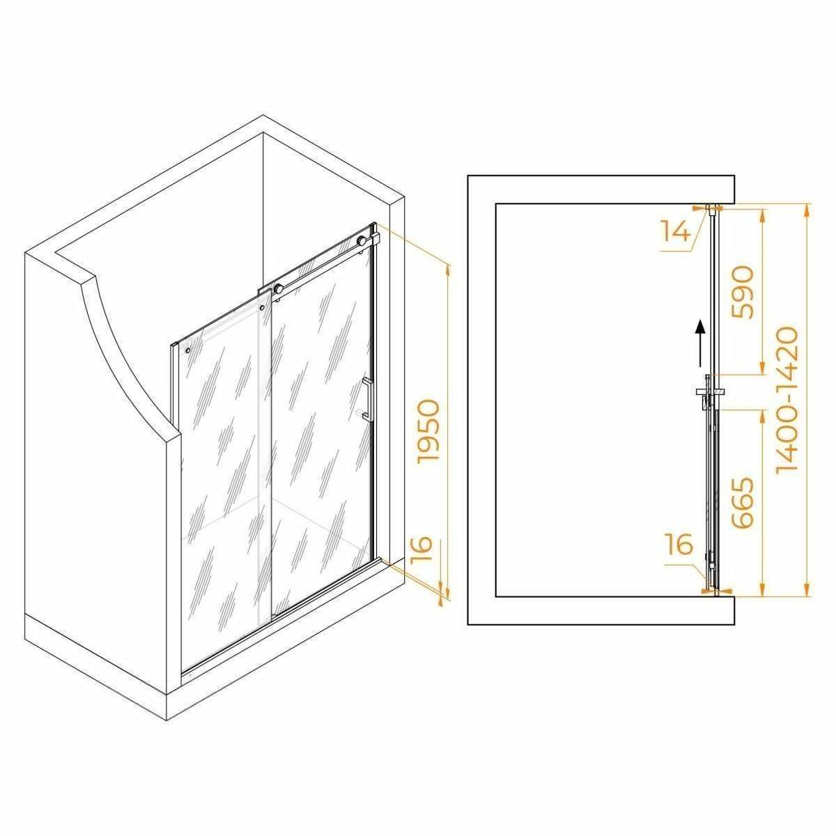 Общая высота двери составляет 1950 мм, позволяя ей легко пропускать даже самых высоких людей. Конструкция раздвижных дверей делает использование двери удобнее и экономит место в ванной комнате. Двойные ролики плавно и бесшумно открывают и закрывают дверь.