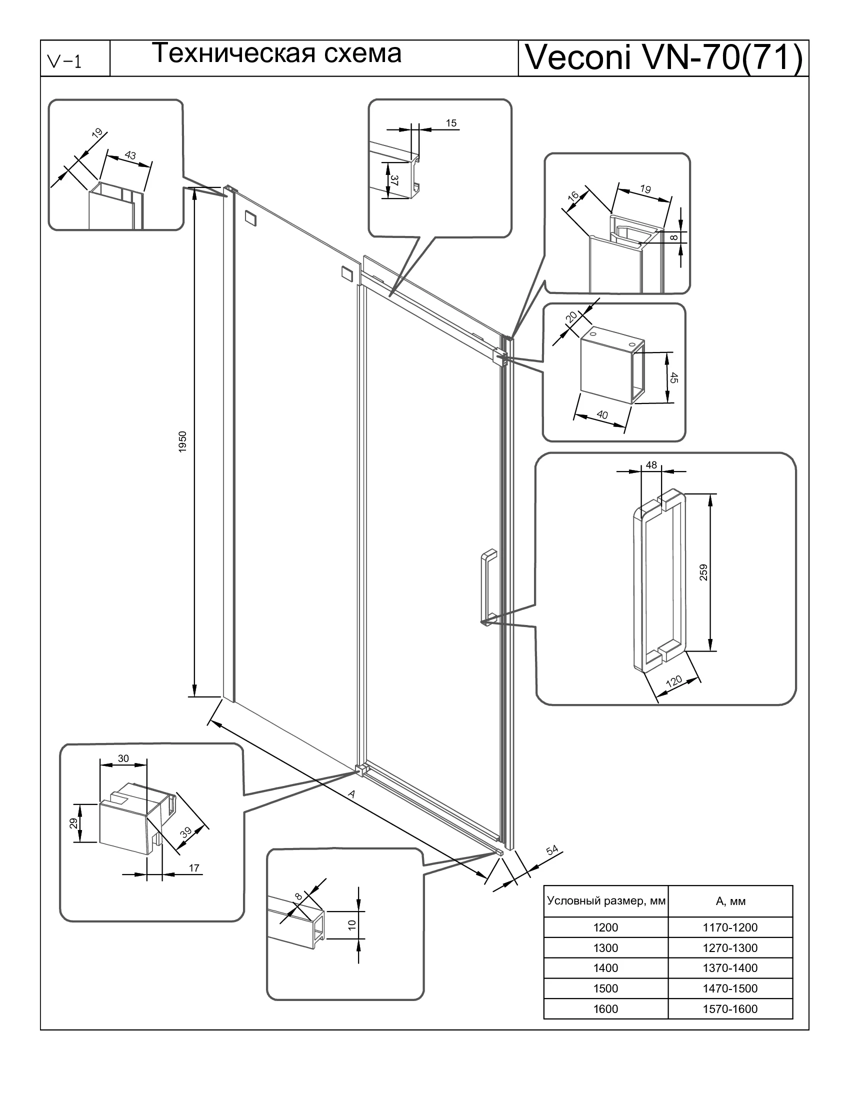 —Душевая дверь Veconi Vianno VN70GR-130-01-C4 130х195 стекло прозрачное профиль золото брашированное