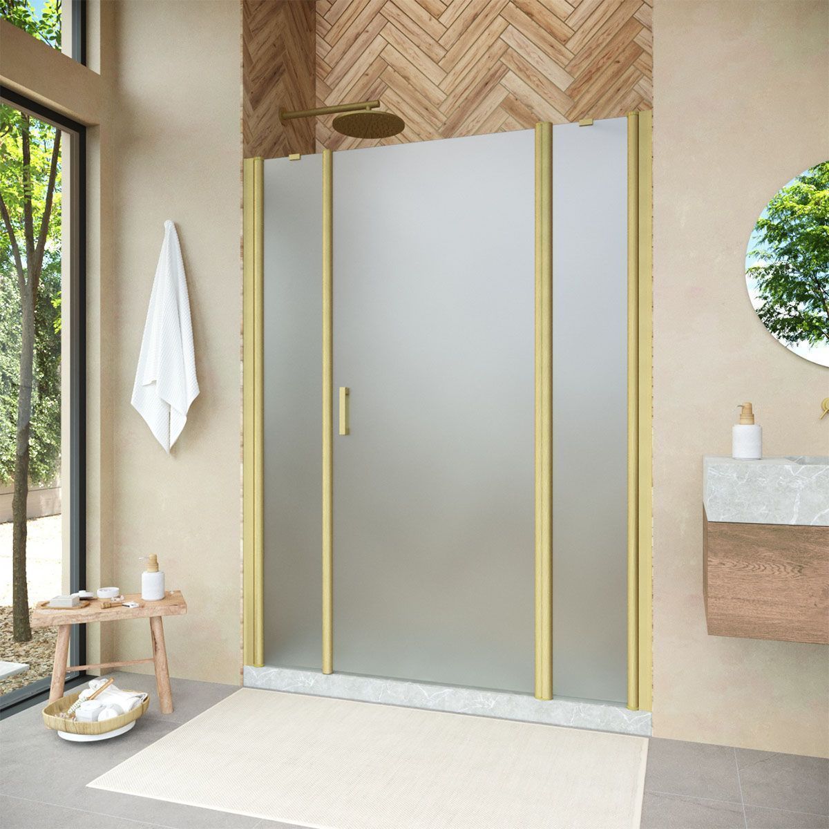 —Душевая дверь Vegas-Glass EP-2F NOVO EP-2F NOVO 215 03 10 R 215х189 стекло матовое профиль золото матовое