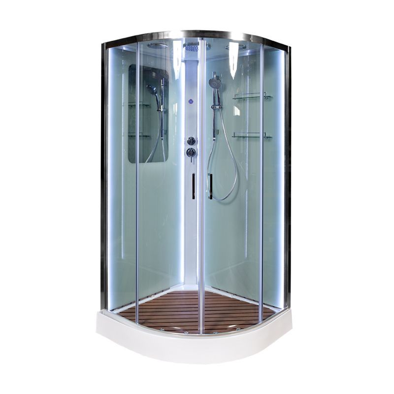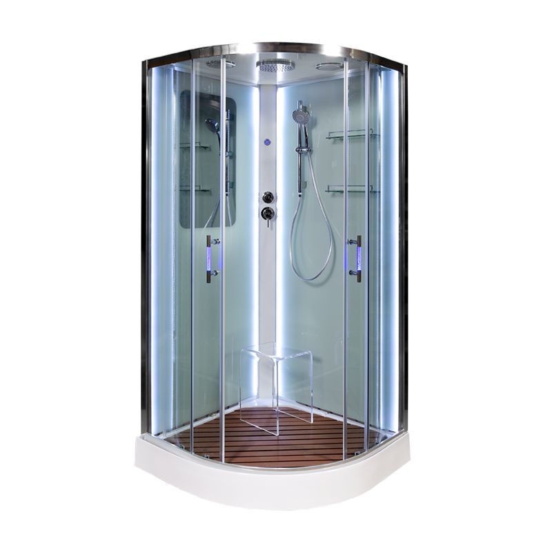 Стильная душевая кабина AvaCan A01 LED с кнопкой сочетает в себе высокую функциональность, практичность и надежность. Для изготовления применяют безопасное закаленное стекло толщиной 6 мм, надежно фиксируемое алюминиевым профилем. Цвет профиля хром. В комплекте зеркало, сенсорный пульт управления, душевой гарнитур, вентиляция, полочки, зеркало, сифон, полочки, led-подсветка, тропический (верхний) душ, радио, деревянная вставка в поддон.