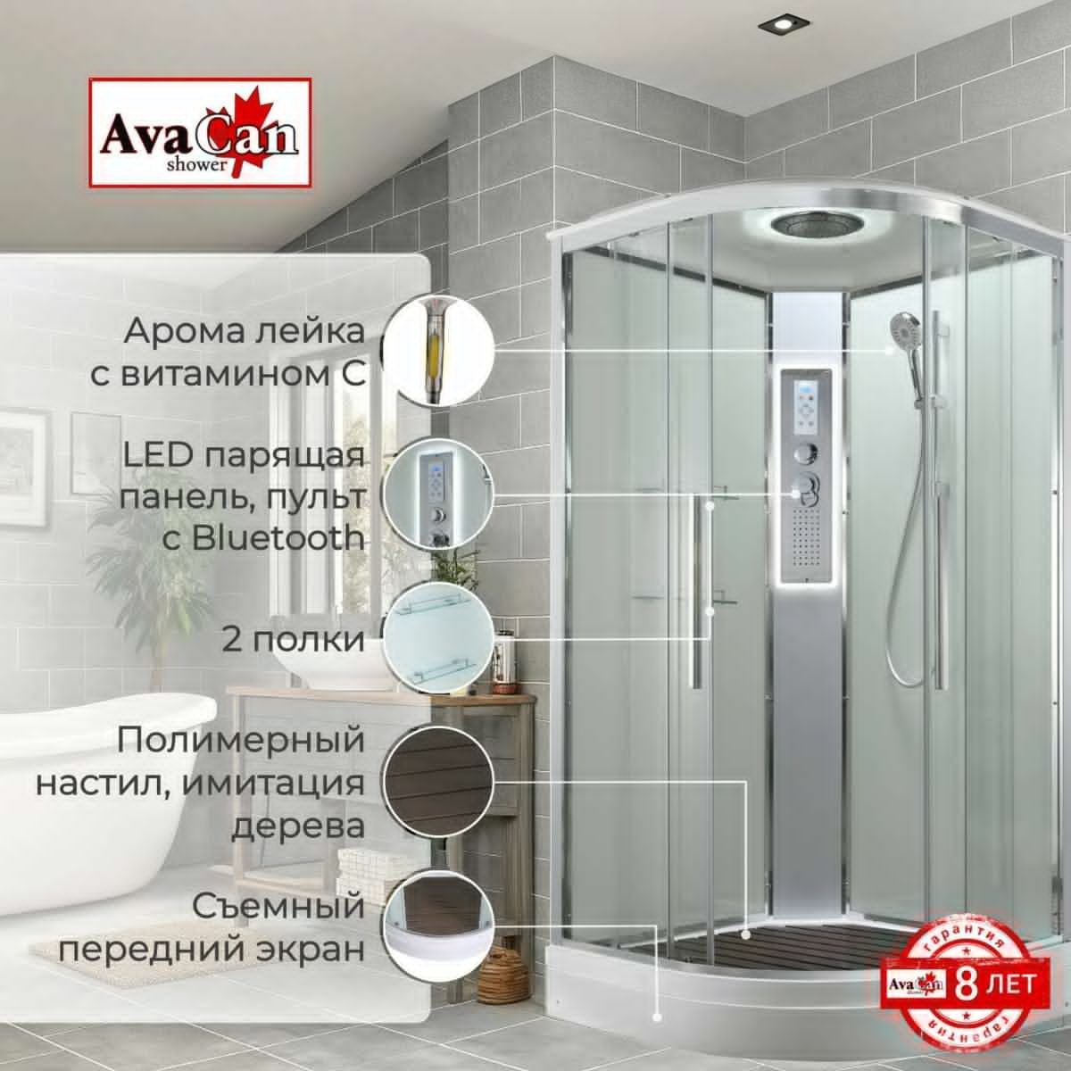 —Душевая кабина AvaCan EM EM2080LEDT 80х80 четверть круга с крышей ориентация универсальная