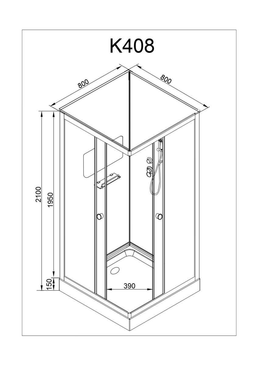Стильная душевая кабина AvaCan K408 без крыши сочетает в себе высокую функциональность, практичность и надежность. Для изготовления применяют безопасное закаленное стекло толщиной 5 мм, надежно фиксируемое алюминиевым профилем. Цвет профиля хром. В комплекте зеркало, душевой гарнитур, полочка, деревянная вставка в поддон.