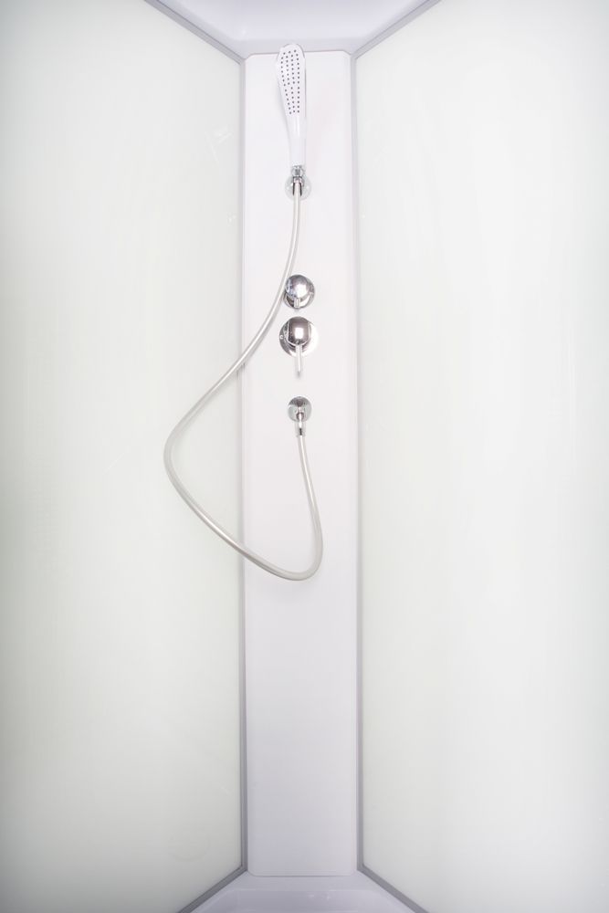 Стильная душевая кабина AvaCan L910 сочетает в себе высокую функциональность, практичность и надежность. Для изготовления применяют безопасное закаленное стекло толщиной 4 мм, надежно фиксируемое алюминиевым профилем. Цвет профиля хром. В комплекте тропический (верхний) душ, вентиляция.