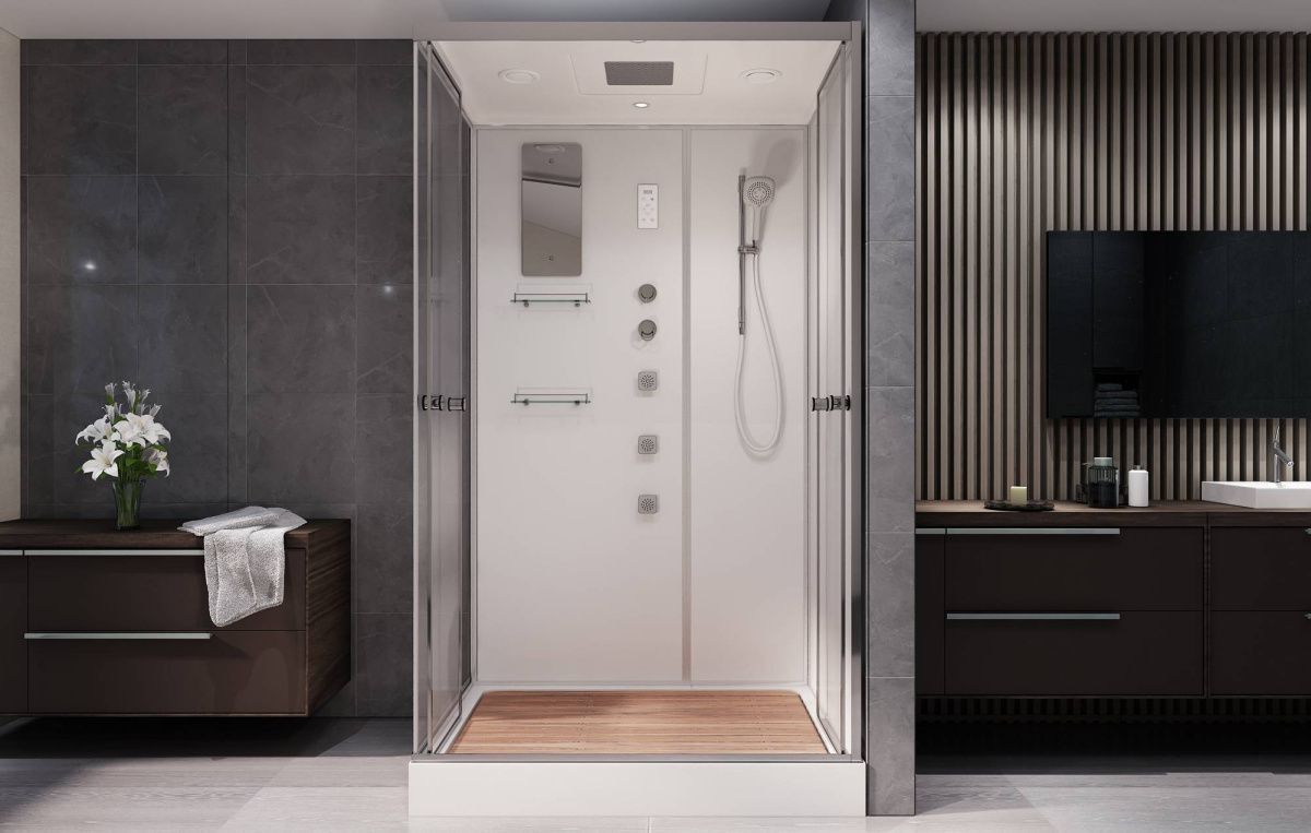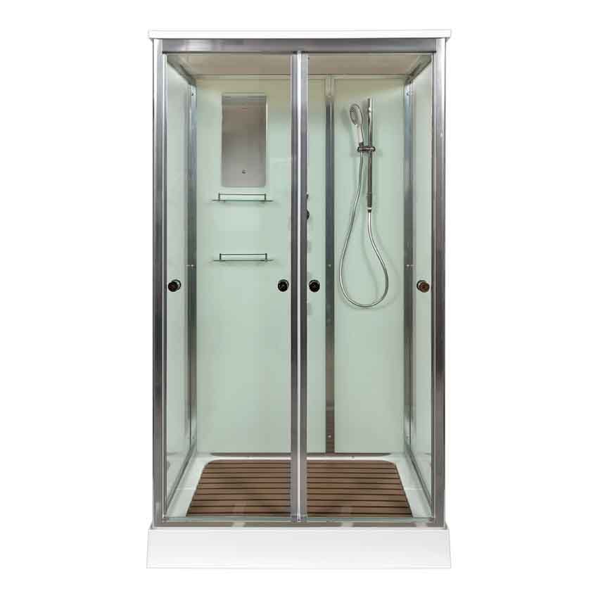 Стильная душевая кабина с внутренней сборкой AvaCan V1215 сочетает в себе высокую функциональность, практичность и надежность. Для изготовления применяют безопасное закаленное стекло толщиной 5 мм, надежно фиксируемое алюминиевым профилем. Цвет профиля хром. В комплекте зеркало, сенсорный пульт управления, душевой гарнитур, смеситель, тропический (верхний) душ, переключатель режимов, вентиляция, гидромассажные форсунки, тропический (верхний) душ, вентиляция, радио, деревянная вставка в поддон.
