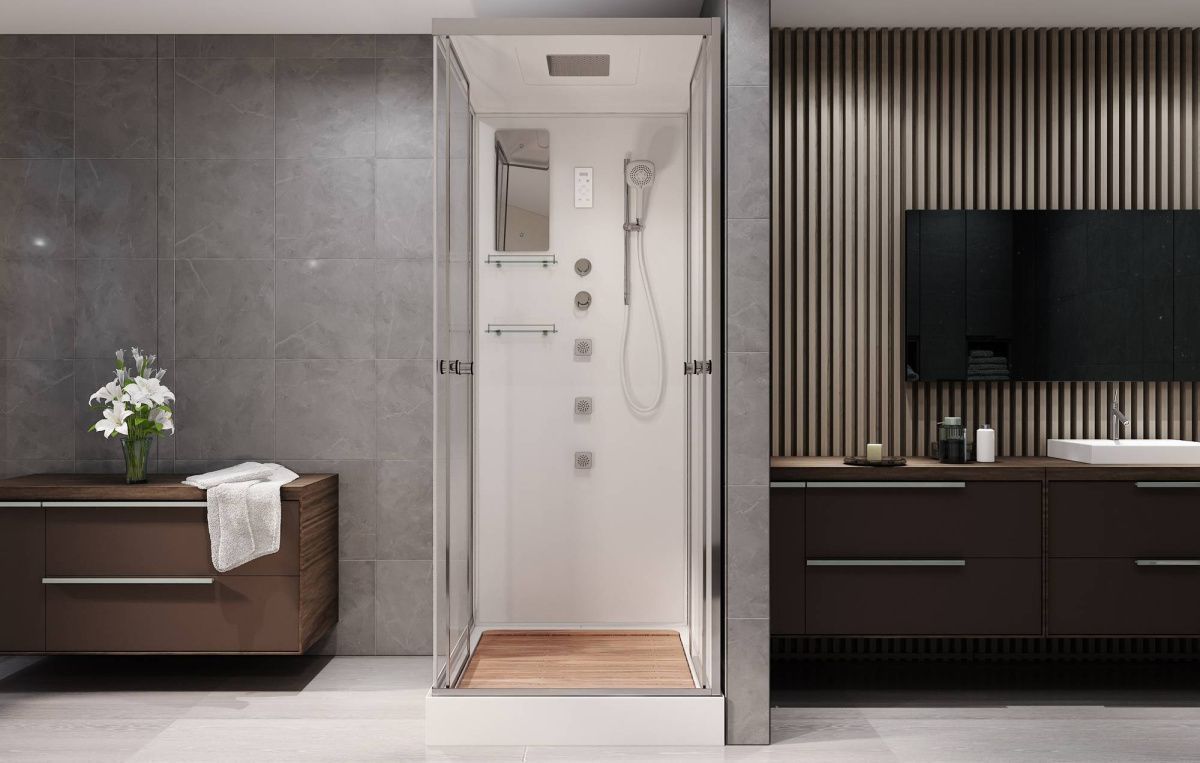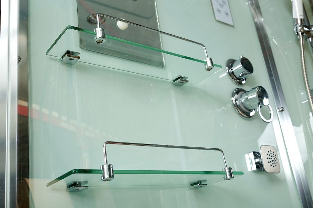 Стильная душевая кабина с внутренней сборкой AvaCan V9015 сочетает в себе высокую функциональность, практичность и надежность. Для изготовления применяют безопасное закаленное стекло толщиной 6 мм, надежно фиксируемое алюминиевым профилем. Цвет профиля хром. В комплекте зеркало, сенсорный пульт управления, душевой гарнитур, смеситель, тропический (верхний) душ, переключатель режимов, вентиляция, полочки, гидромассажные форсунки, тропический (верхний) душ, вентиляция, радио, деревянная вставка в поддон.