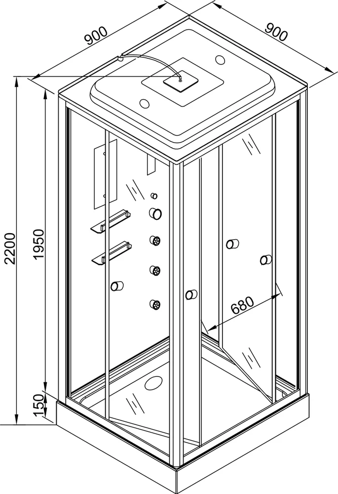 - Размеры (ш/г/в): 90х90х220