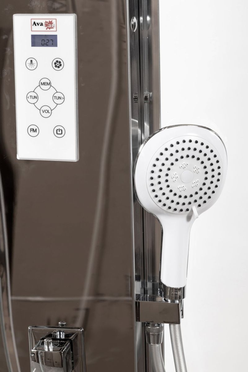 Стильная душевая кабина с внутренней сборкой AvaCan Z111 сочетает в себе высокую функциональность, практичность и надежность. Для изготовления применяют безопасное закаленное стекло толщиной 6 мм, надежно фиксируемое алюминиевым профилем. Цвет профиля хром.Крыша и задние стенки матовые. В комплекте душевой гарнитур, тропический (верхний) душ, гидромассажные форсунки, деревянная вставка в поддон.