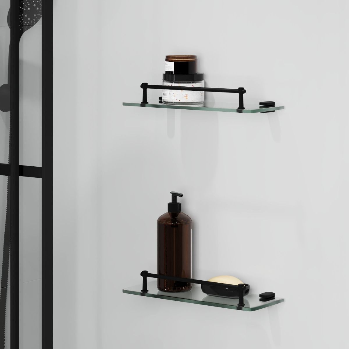 - стеклянные полки с металлическими бортиками - 2 шт. Размер 32*9 см, толщина стекла 6 мм.