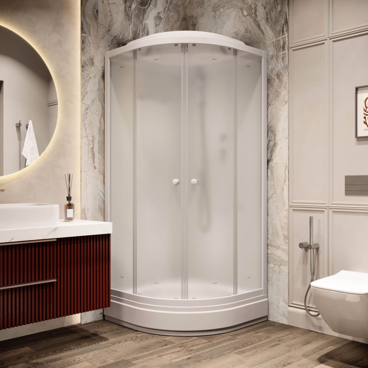 Современный дизайн. Модельный ряд кабин PARLY представлен в различных стилях, конфигурациях и цветах, а также с различными формами поддонов. Поэтому можно индивидуально подобрать кабину практически для любого дизайнерского решения. Презентабельный вид кабинам придают закаленные стекла, которые способствуют надежности и не боятся химических средств, что позволяет дольше сохранить их внешнюю привлекательность.