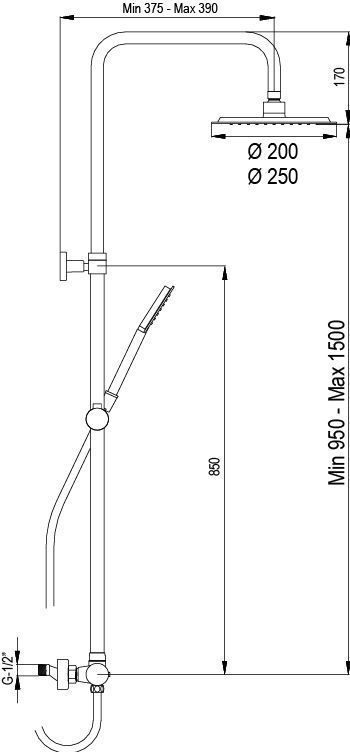 —Душевая колонна AQG Urban Flow 21UFR25UFD05 настенная цвет черный матовый