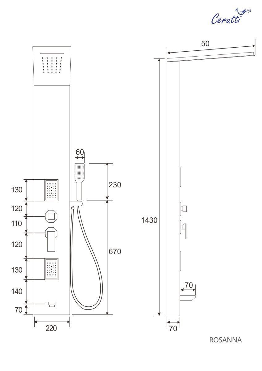 Удобная и многофункциональная душевая панель ROSANNA предназначена для установки внутри душевых уголков, ограждений, а также совместно с ванной.