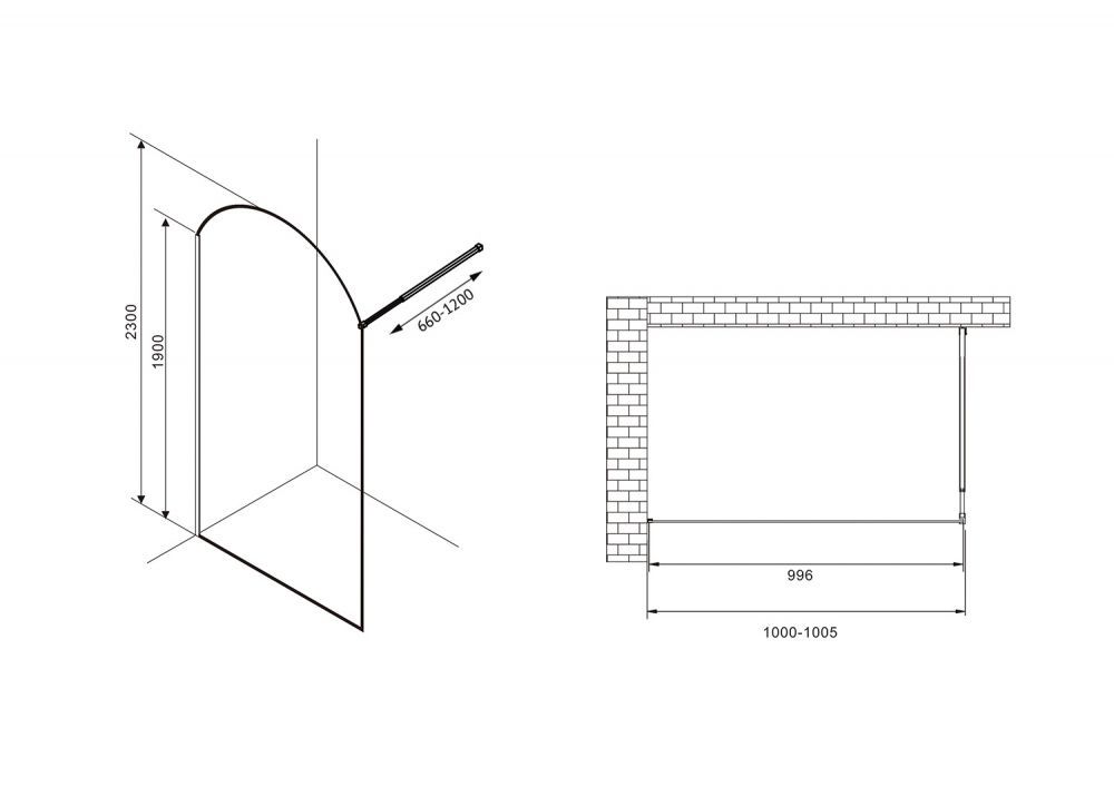 —Душевая перегородка Abber Immer Offen AG64100BN 100х230 стекло прозрачное профиль черный