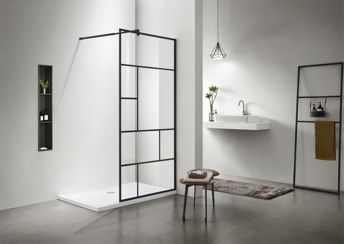 —Душевая перегородка Aquatek AQ WIW Print 10020BL 100х200 стекло прозрачное профиль черный