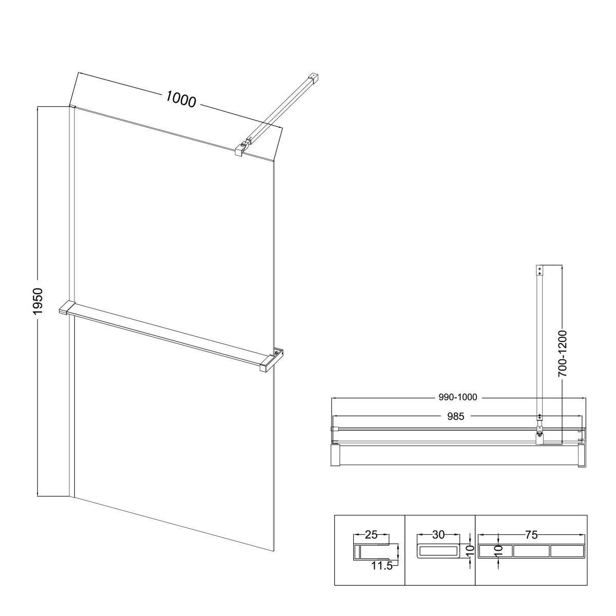 Перегородка, изготовленая из закаленного стекла толщиной 8 мм, соответствует высоким стандартам качества и надежности, что обеспечивает долговечность и безопасность ее использования. Телескопическая штанга с регулировкой от 700 до 1200 мм позволяет легко настроить перегородку под нужный размер душевого пространства, обеспечивая оптимальное прилегание к стенам и идеальную посадку.