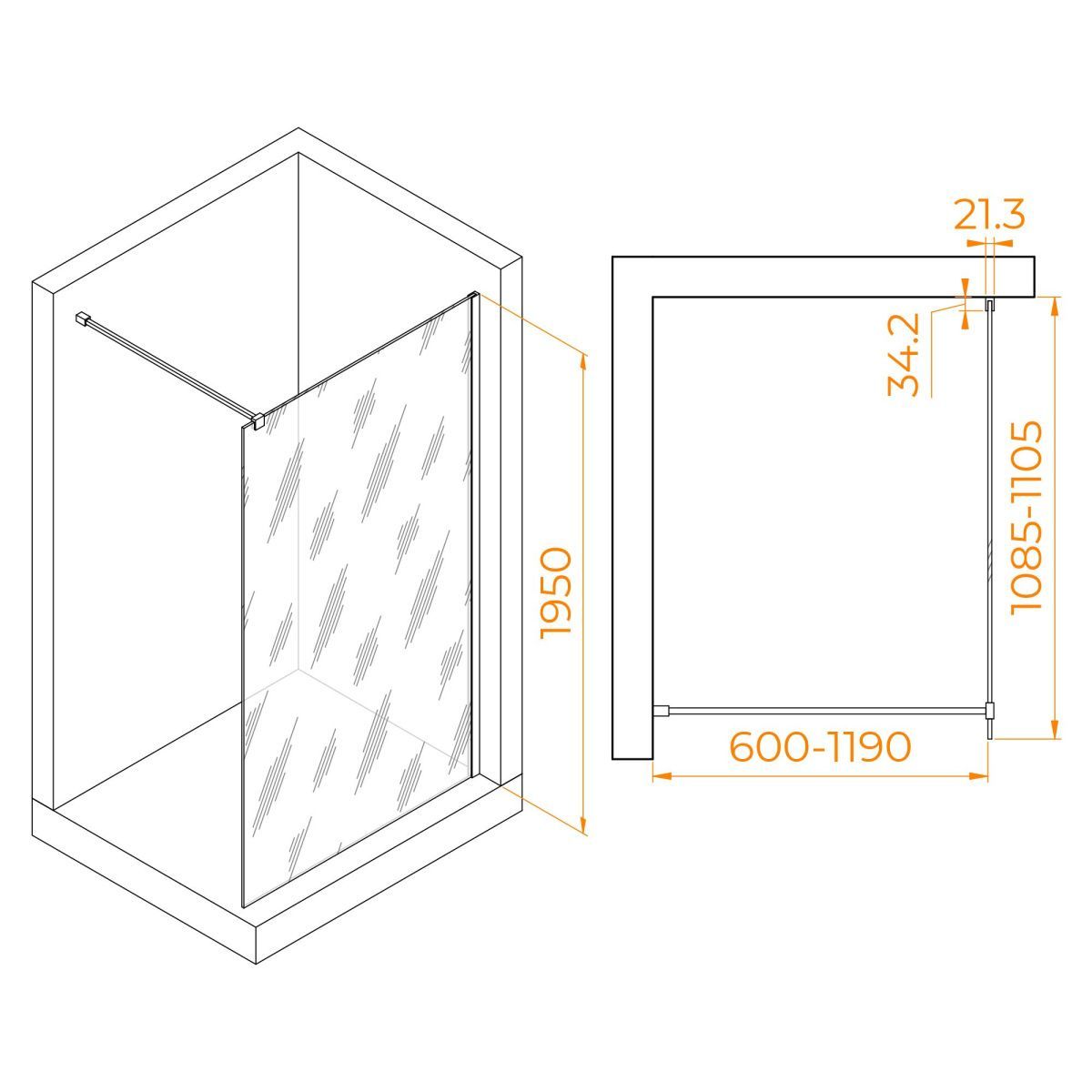 Перегородка изготовлена из закаленного стекла толщиной 10 мм, что обеспечивает надежность и долговечность изделия. Прозрачное стекло позволяет вам наслаждаться свежими ощущениями во время принятия душа, создавая визуальное пространство и эффект простора в ванной комнате. Благодаря анодированному алюминиевому профилю цвета хром, перегородка идеально сочетается со стилем вашей ванной комнаты и добавляет элегантность и современность в интерьер.