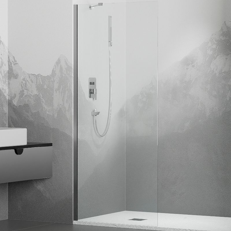 Главной особенностью данной перегородки является толщина стекла в 8 мм. Благодаря этому, конструкция является надежной и устойчивой к механическим воздействиям. Также стекло имеет прозрачный цвет, благодаря чему сохраняется прозрачность в ванной комнате.
