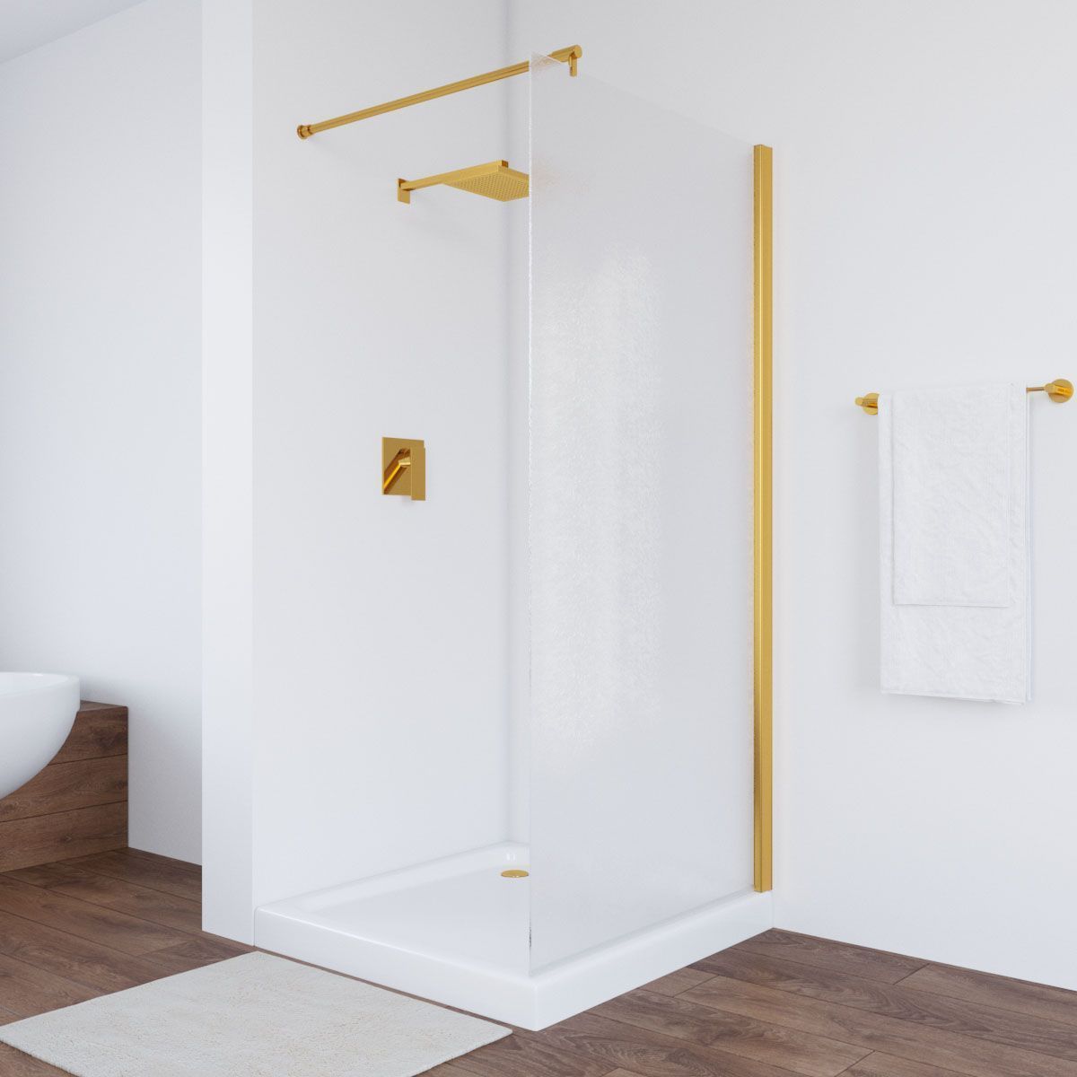 —Душевая перегородка Vegas-Glass EAF TUR+NOVO EAF TUR NOVO 116 09 02 115х200 стекло рифленое профиль золото
