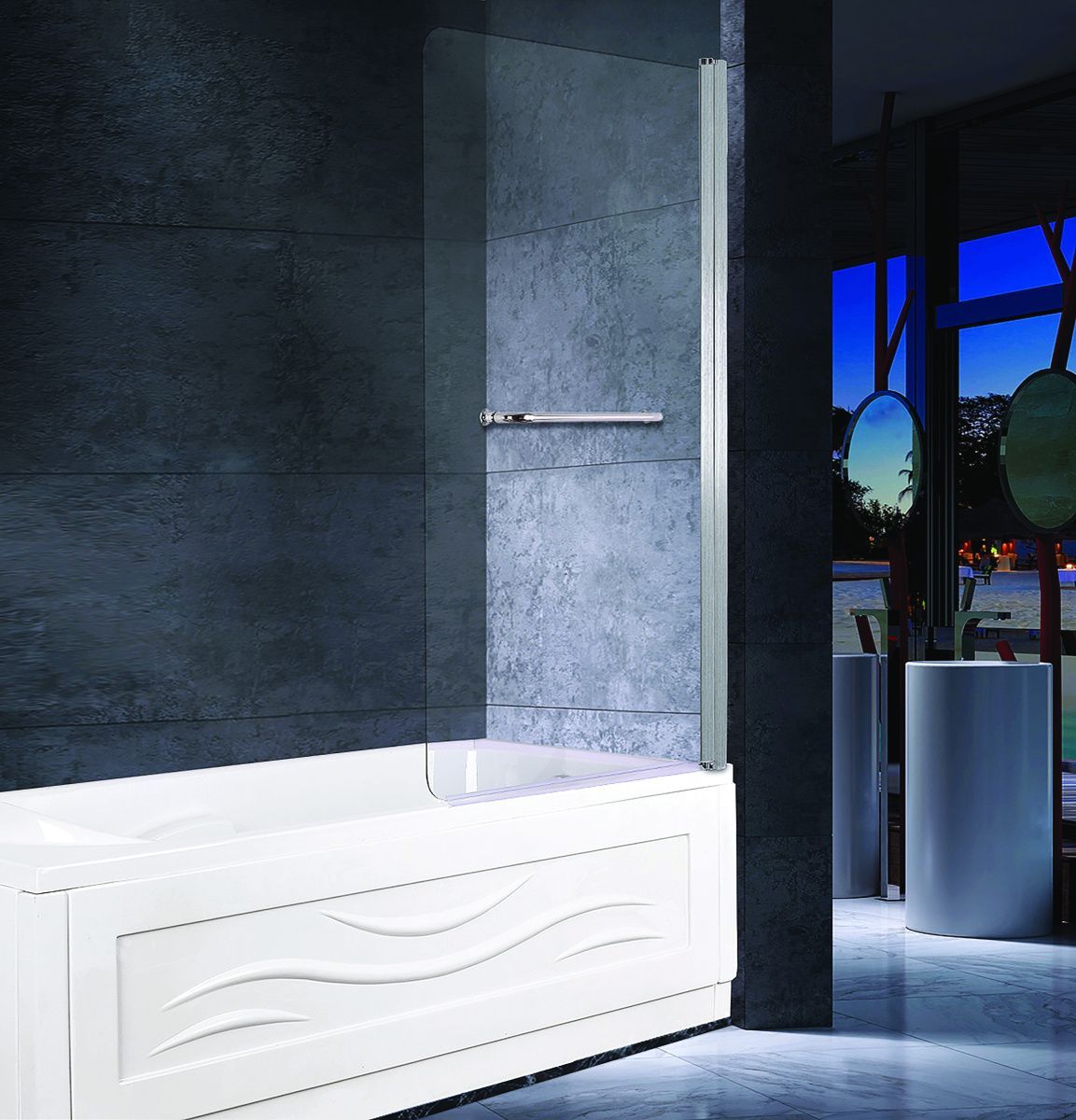Внутренняя сторона стекла обработа по технологии "easy clean glass". Профиль: хромированный алюминий. Ручка: металл с нанесённым фирменным логотипом. Монтаж на обе стороны.