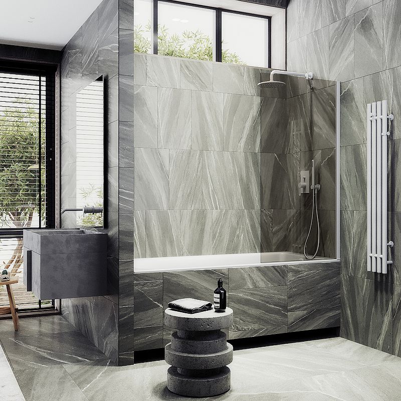 Монтаж осуществляется с помощью алюминиевого профиля, что обеспечивает надежность крепления и безопасность использования стеклянной перегородки для ванной. Также, шторка оснащена специальным уплотнителем, который предотвращает попадание воды на пол ванной комнаты.