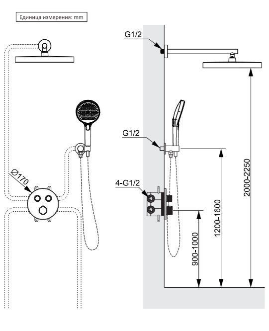 Душевая система AltroBagno Bilancia AltroBagnoBilancia040415Ni встраиваемая в стену