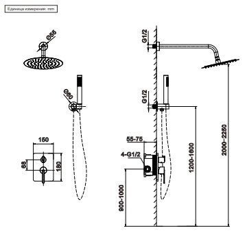 —Душевая система AltroBagno Unione AltroBagnoUnione040108GM встраиваемая в стену