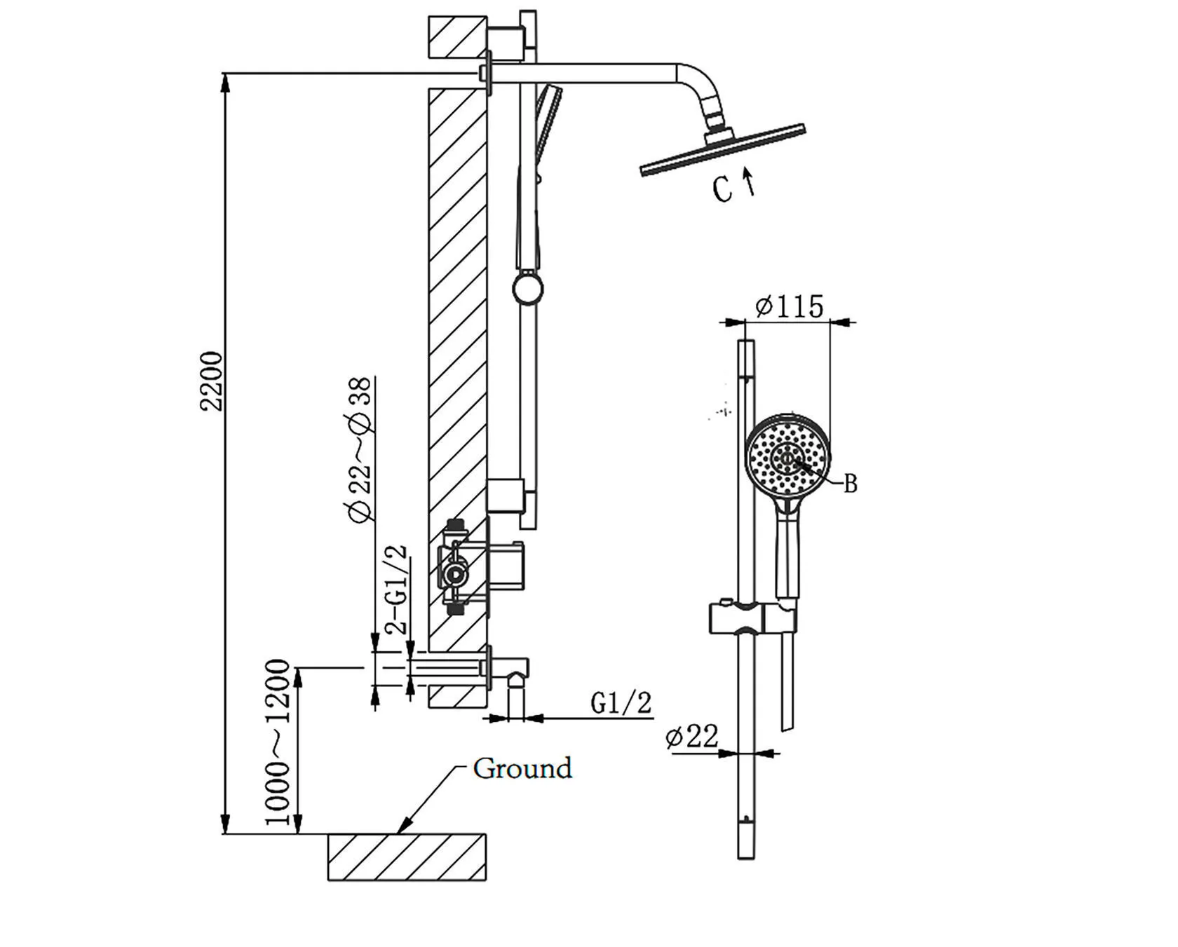 Вылет верхнего душа, см