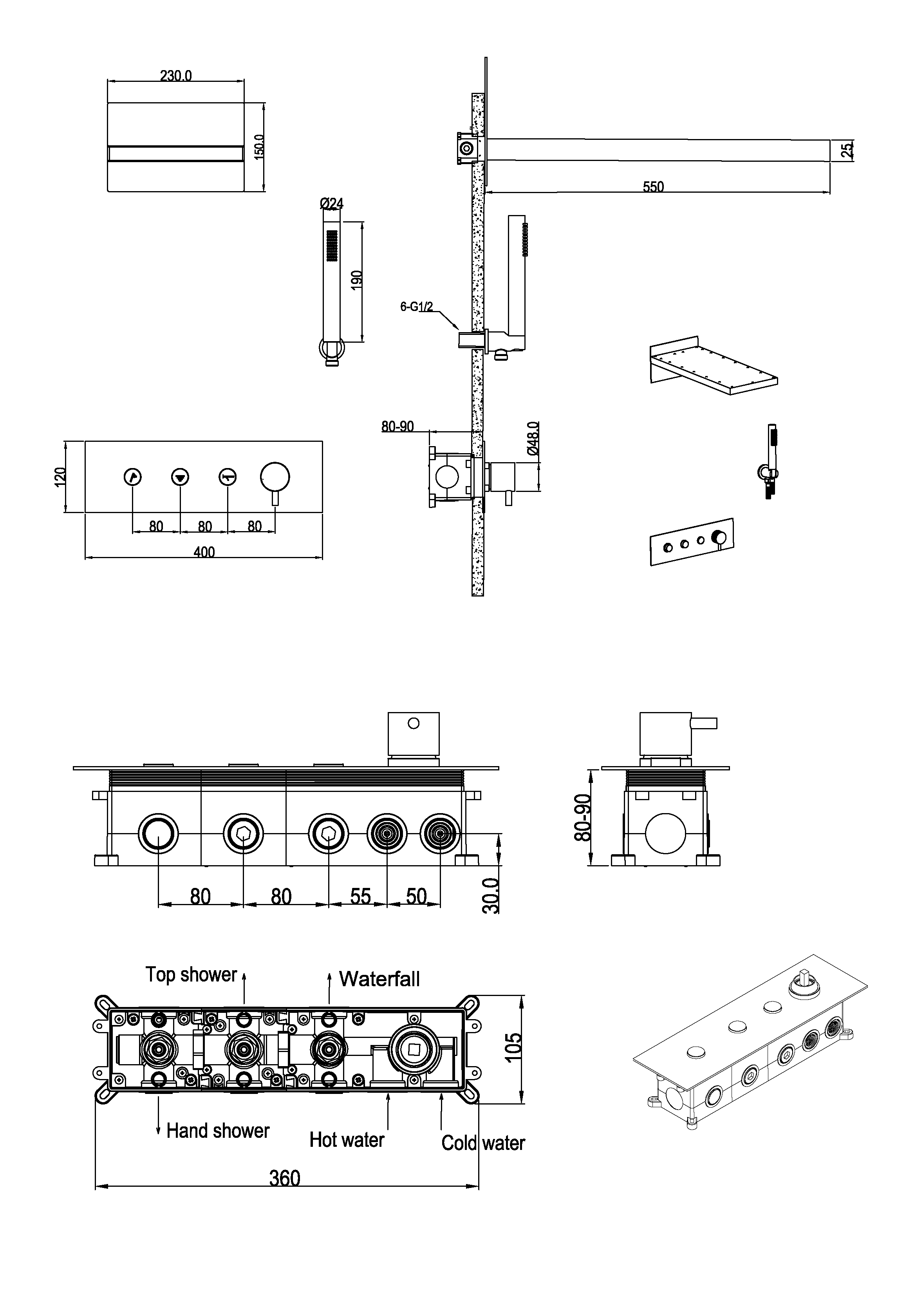 Душевая система Boheme Fusion 130-BG встраиваемая цвет черный