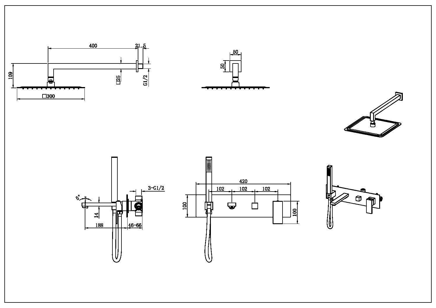 —Душевая система Boheme Qubic 474-G встраиваемая цвет золото