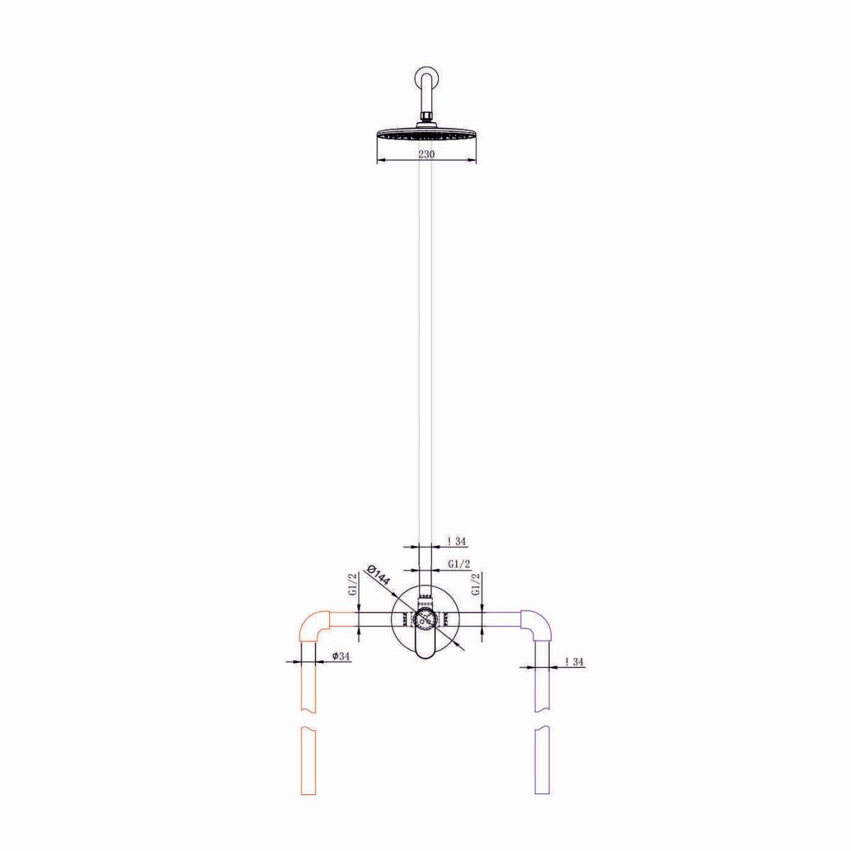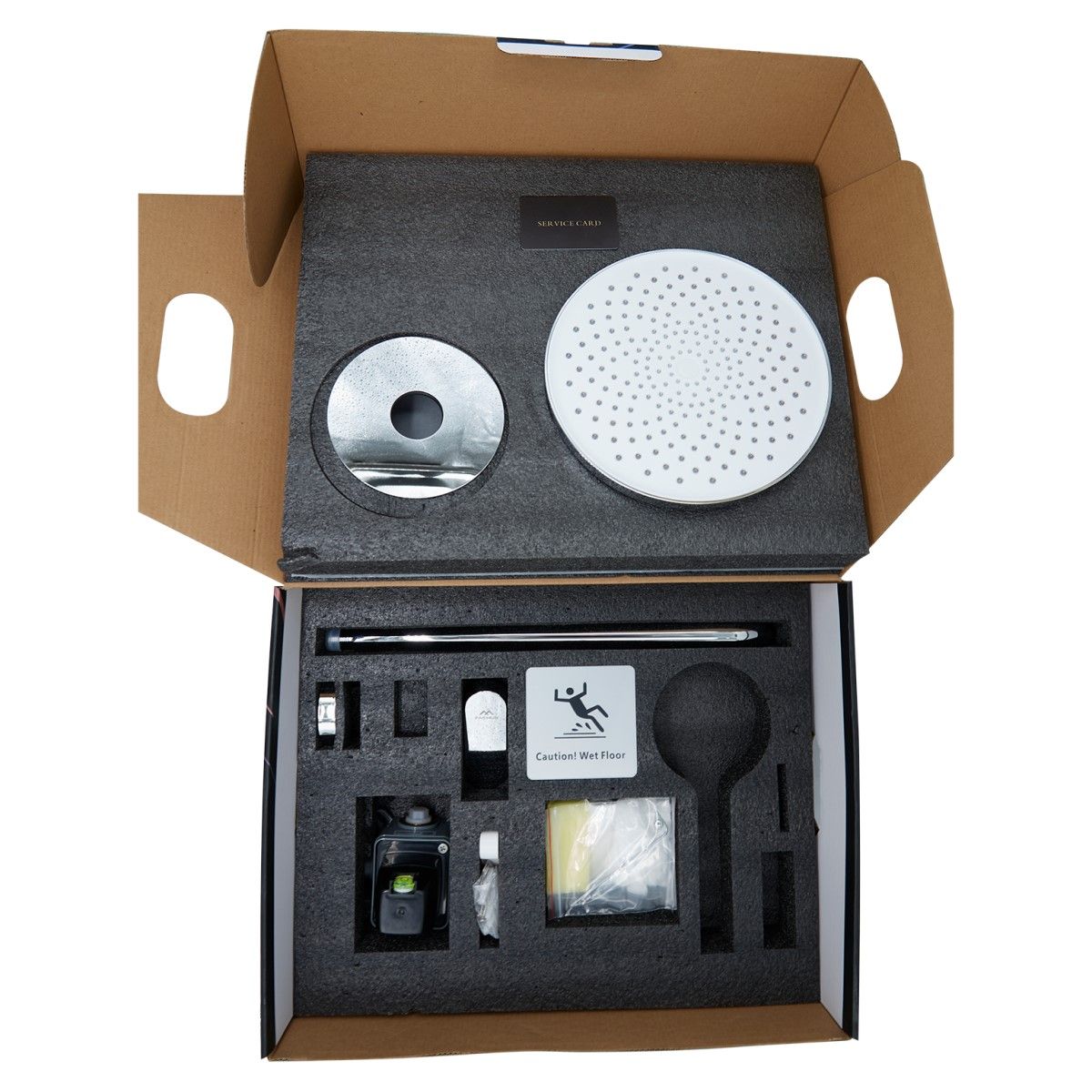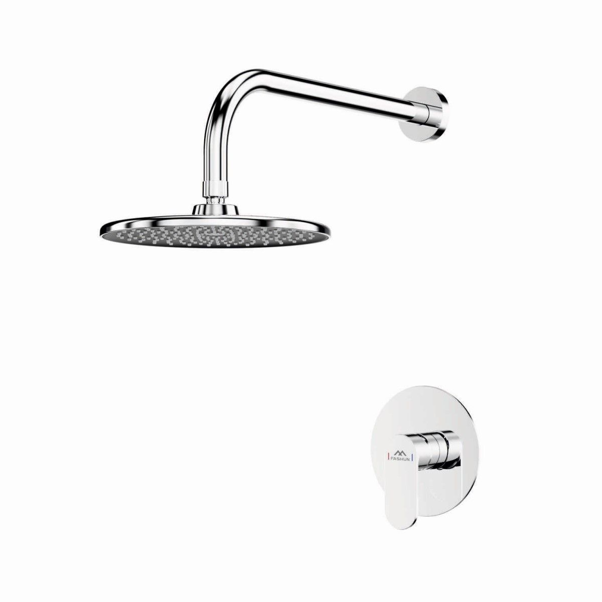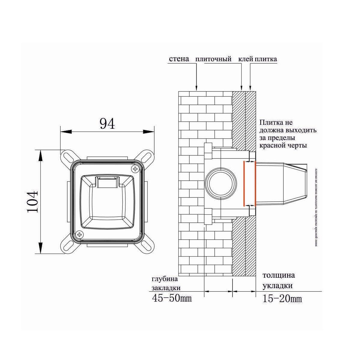 A7185 смеситель встраиваемый душевой в комплекте с верхней лейкой смеситель встраиваемый: латунь, картридж D=35 мм, хром отражатель: сталь SUS201, D= 144 мм, хром штанга верхней лейки: сталь SUS201, L=455 мм, хром верхняя лейка: ABS, D=200 мм, хром внутренняя часть: 104х94 мм, вход 1/2", выход на душ 1/2" индивидуальная упаковка: картонная коробка с ложементом