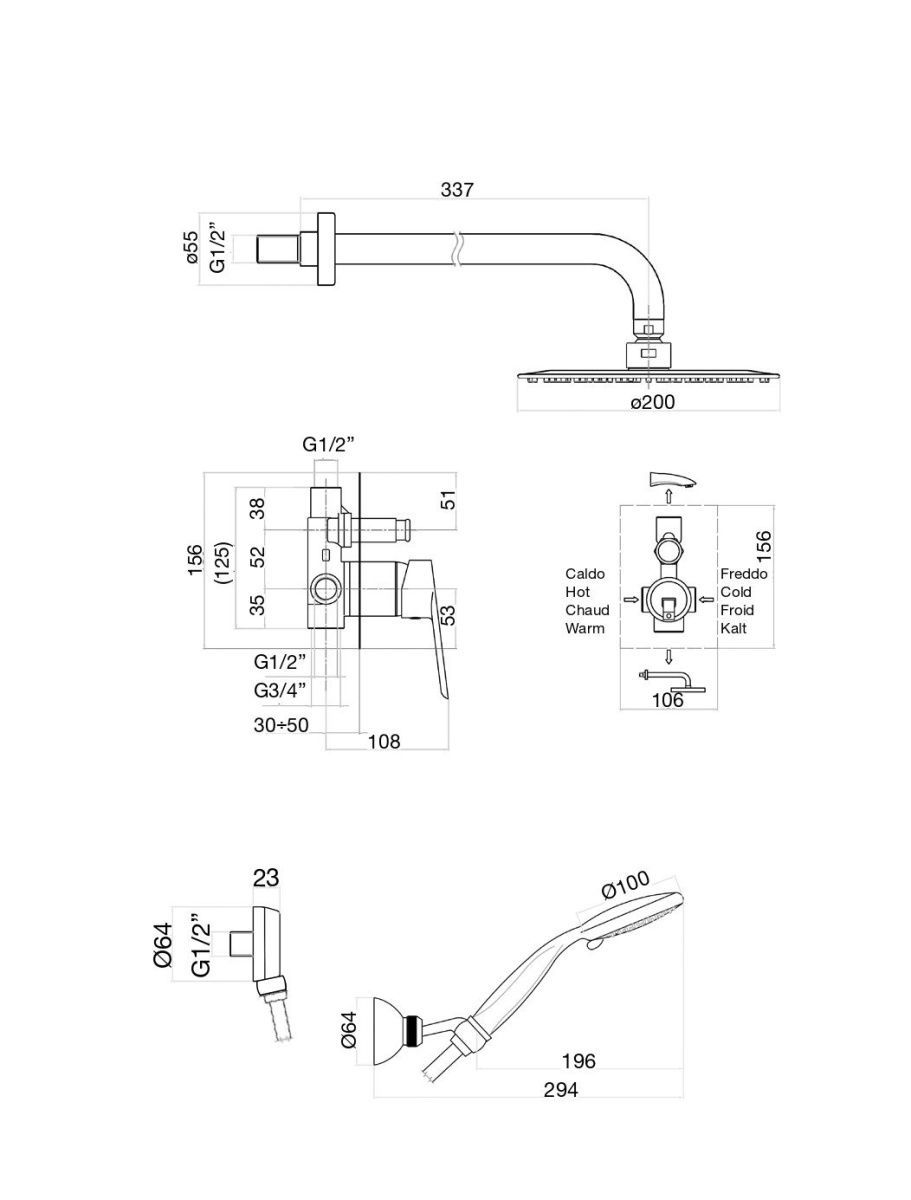 верхний душ, душевая штанга, держатель душевой лейки, ручной душ, смеситель, шланг