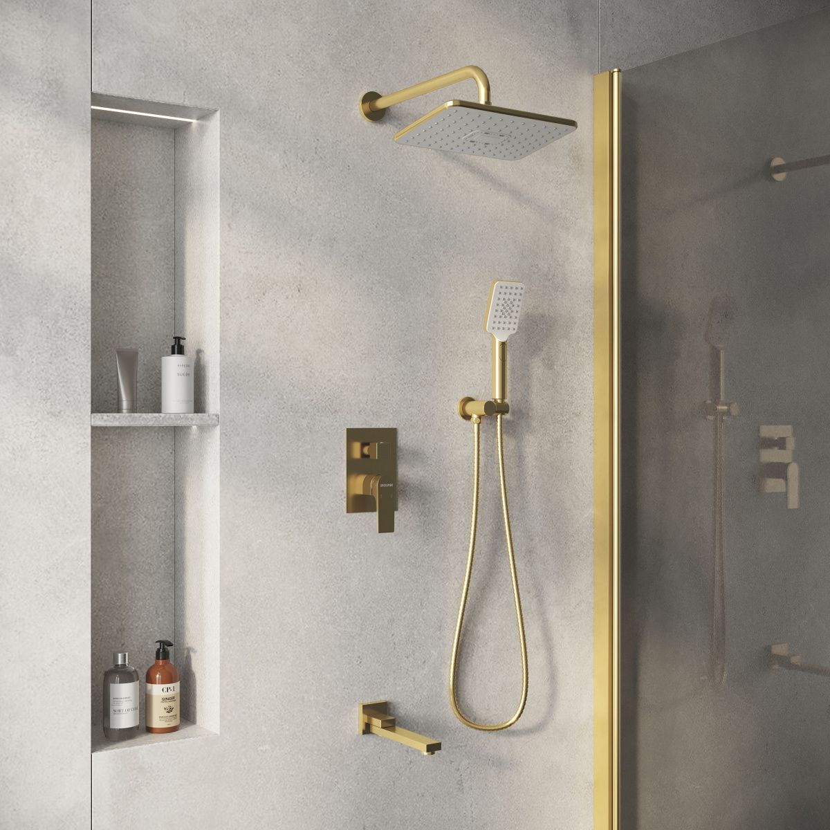 - Тропический душ с регулировкой наклона позволяет направить поток воды в нужном направлении.