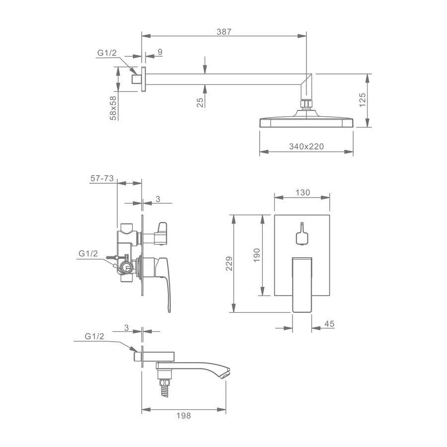 Душевая система Raglo R01.27.09 встраиваемая в стену