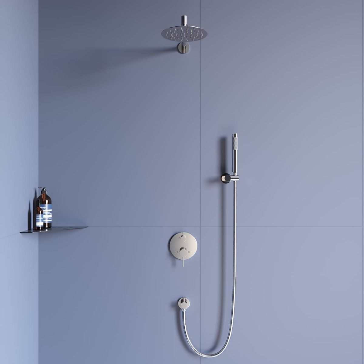 Встраиваемая душевая система выполнена из латуни и нержавеющей стали, что придаёт изделию повышенную устойчивость к образованию коррозии и ржавчины, а внутренний элемент оснащён керамическими пластинами. За счет применения передовых технологий душевые системы рассчитаны на ресурс эксплуатации не менее 10 лет.