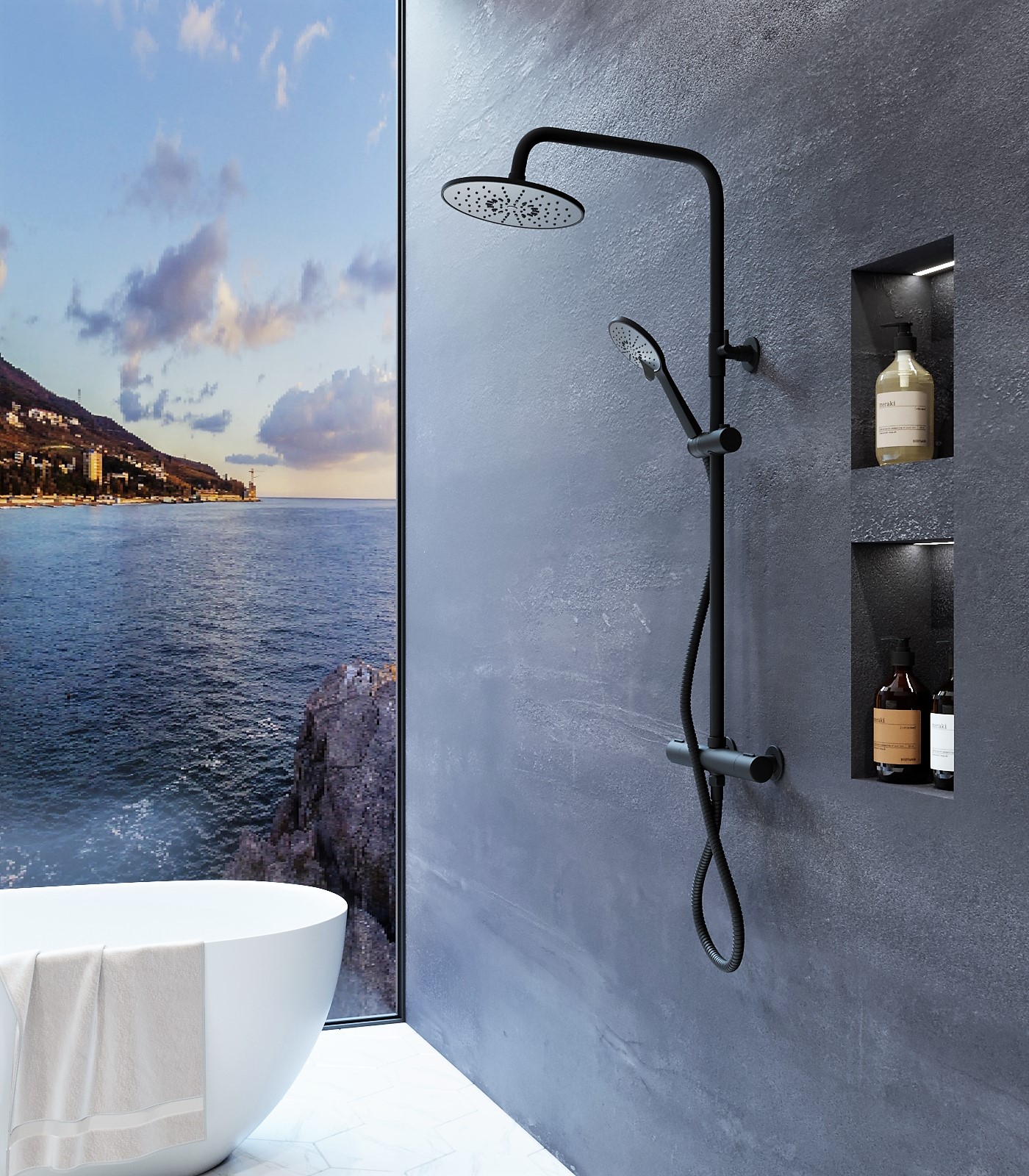 —Душевая стойка Agger Thermo A2451244 настенная цвет черный с термостатом
