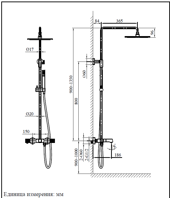 —Душевая стойка AltroBagno Intento AltroBagnoIntento030420Cr настенная цвет хром
