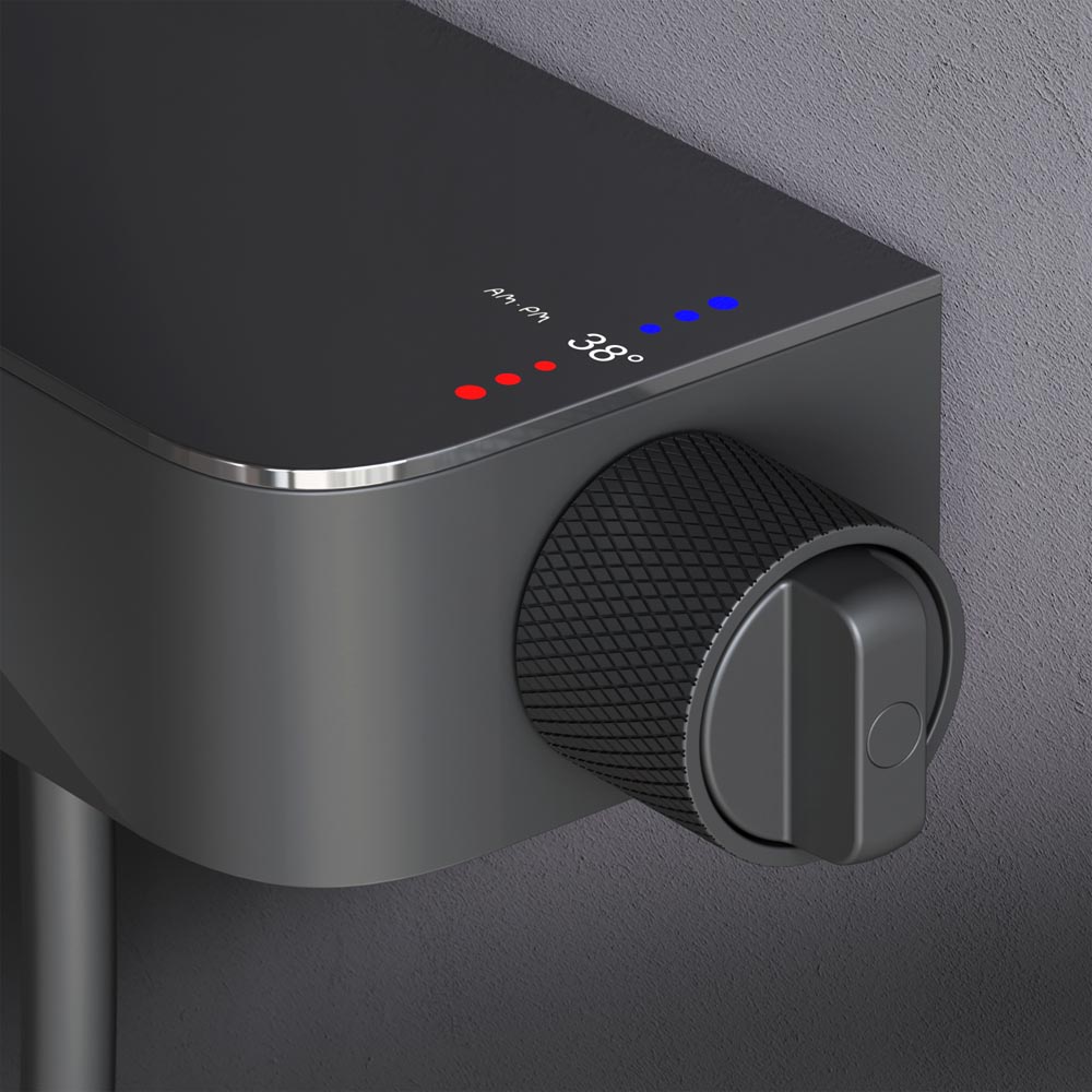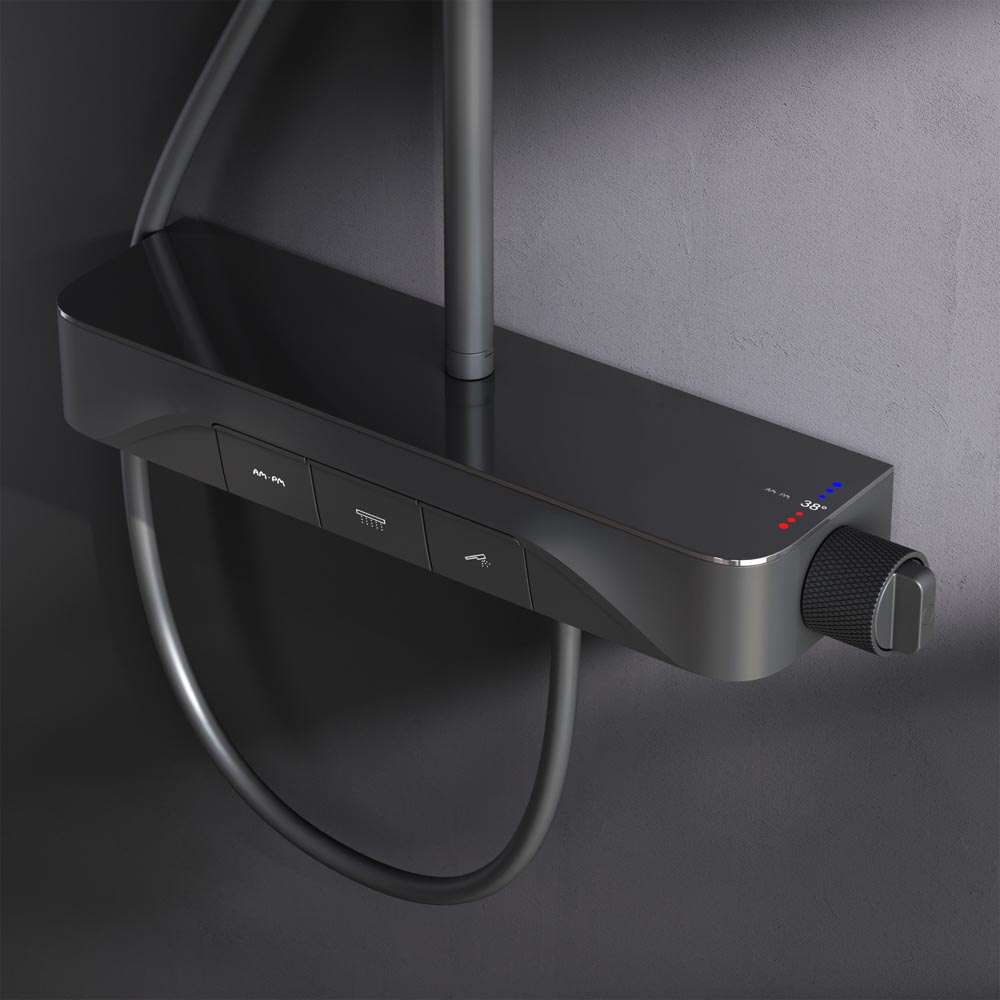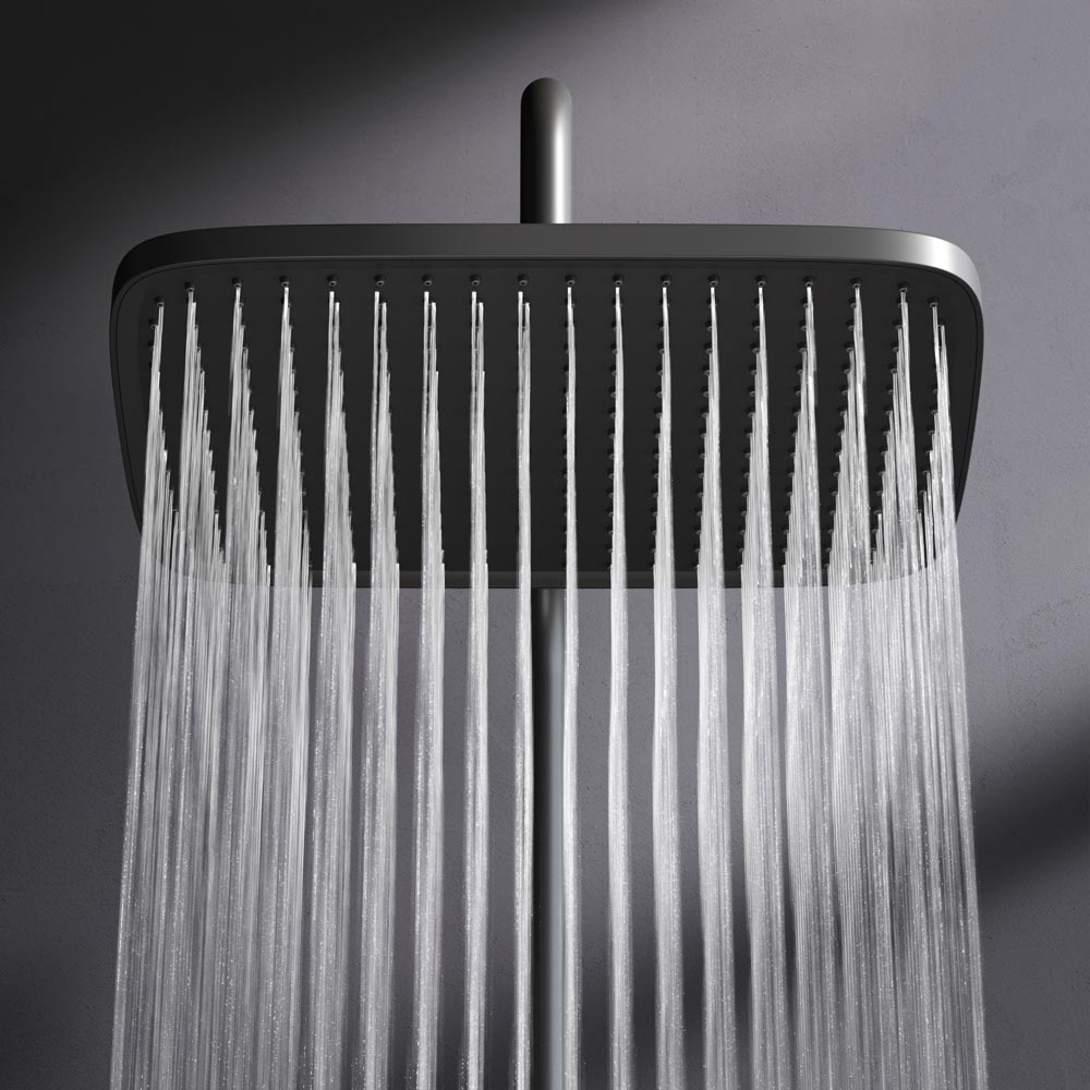 Интуитивно понятное управление: всего одна удобная ручка для настройки температуры и потока воды. Благодаря специально спроектированной эргономичной ручке вы можете управлять душевой системой даже с мыльными руками. Переключение потоков воды осуществляется нажатием клавиши.