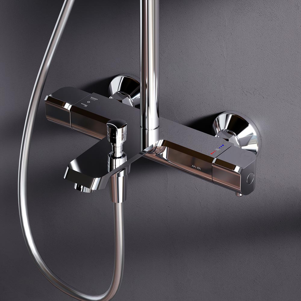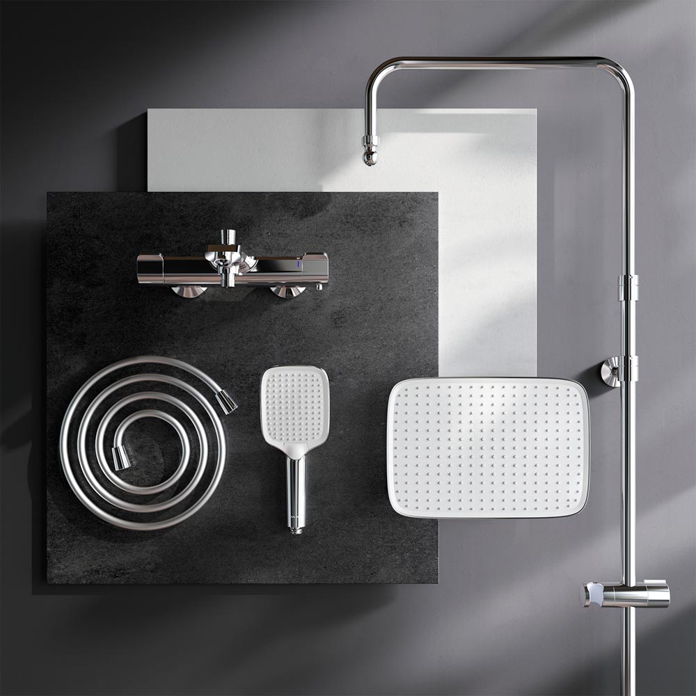Безупречный внешний вид: яркий геометричный дизайн и утонченный силуэт – душевая система Func станет настоящим украшением современной ванной комнаты.