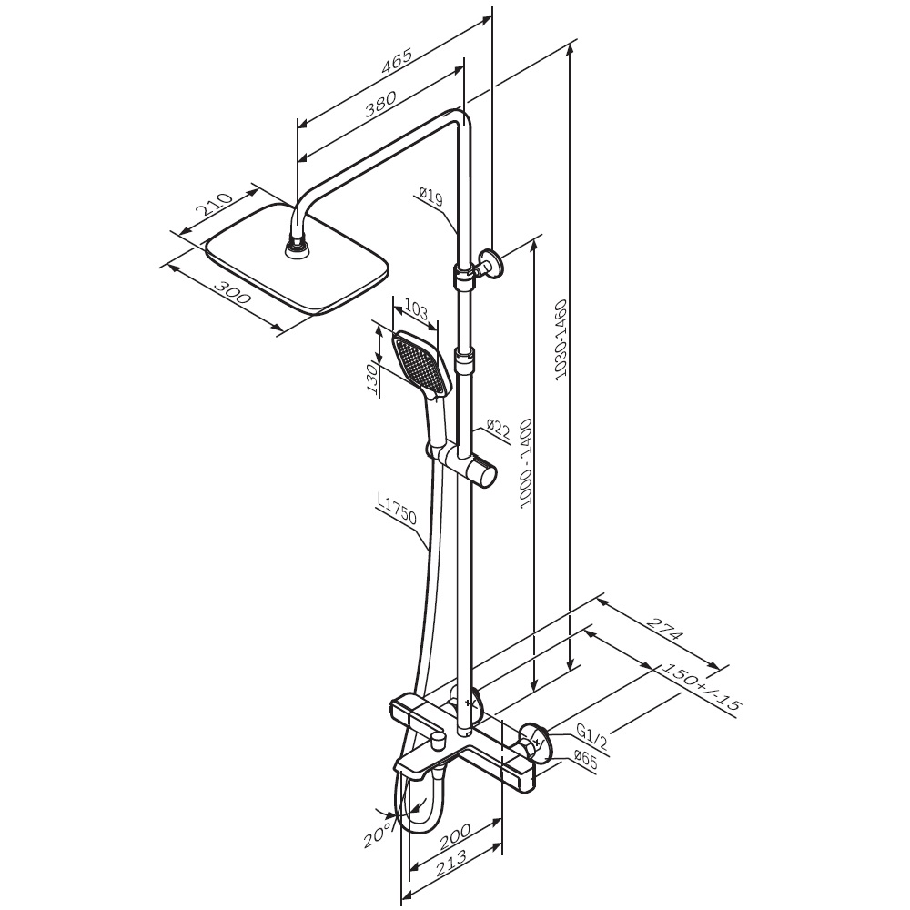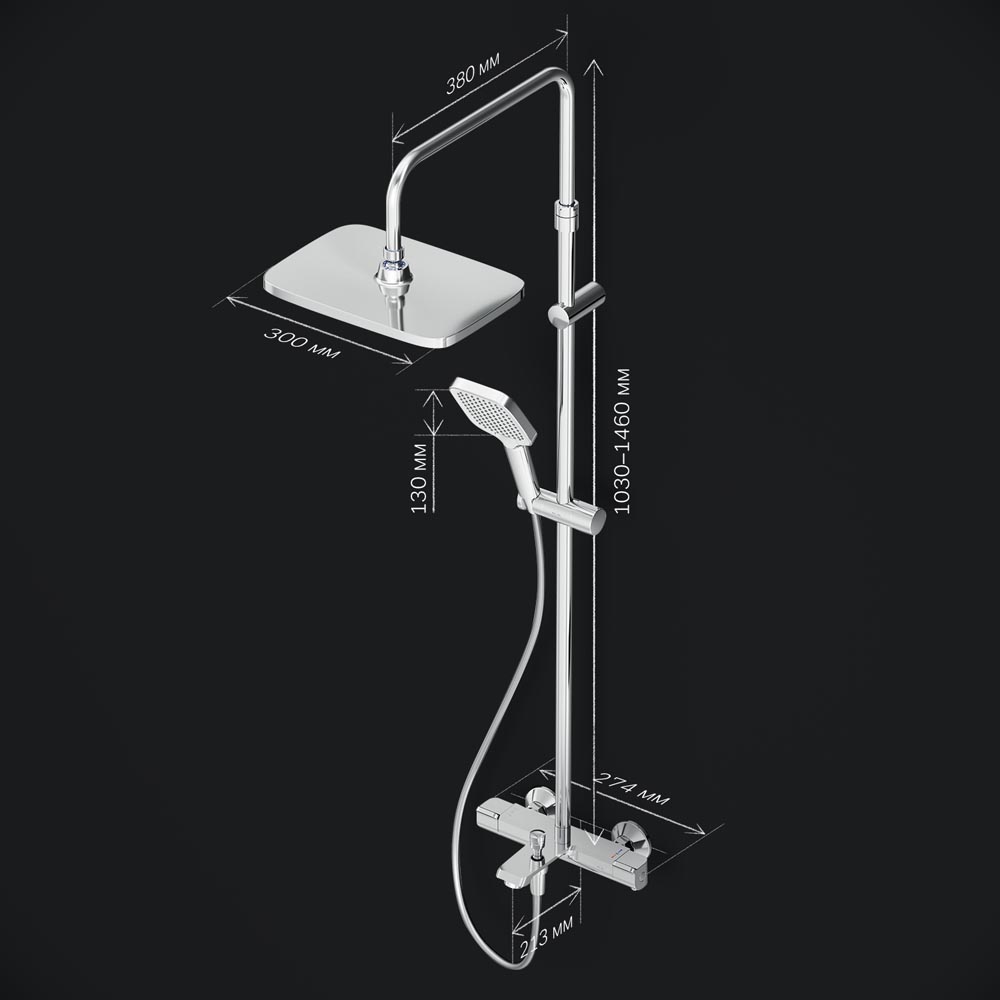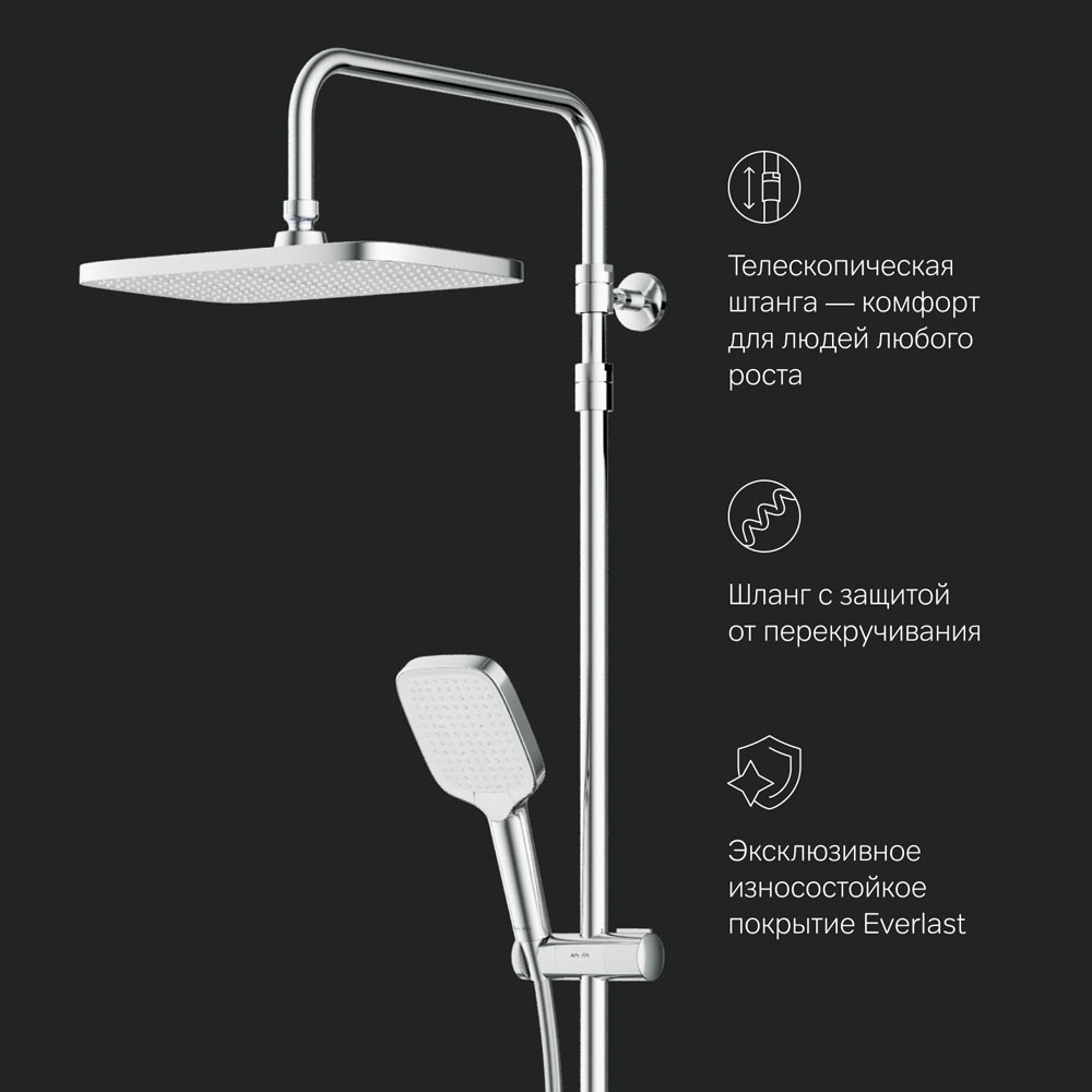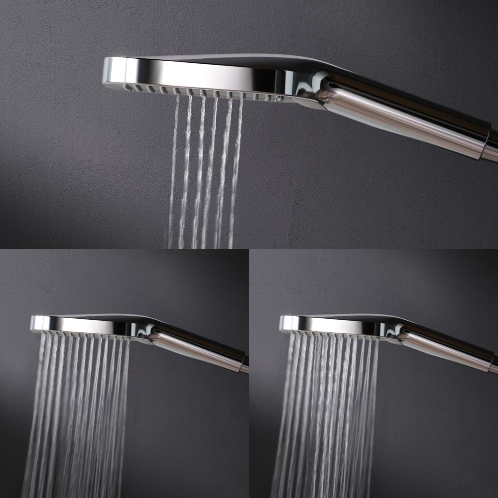 Продуманные детали для вашего удобства: телескопическая штанга регулируется по высоте обеспечивая комфорт для людей любого роста. Прямоугольная форма увеличенный размер леек и 3 режима ручного душа подарят вам ощущения настоящего домашнего SPA.
