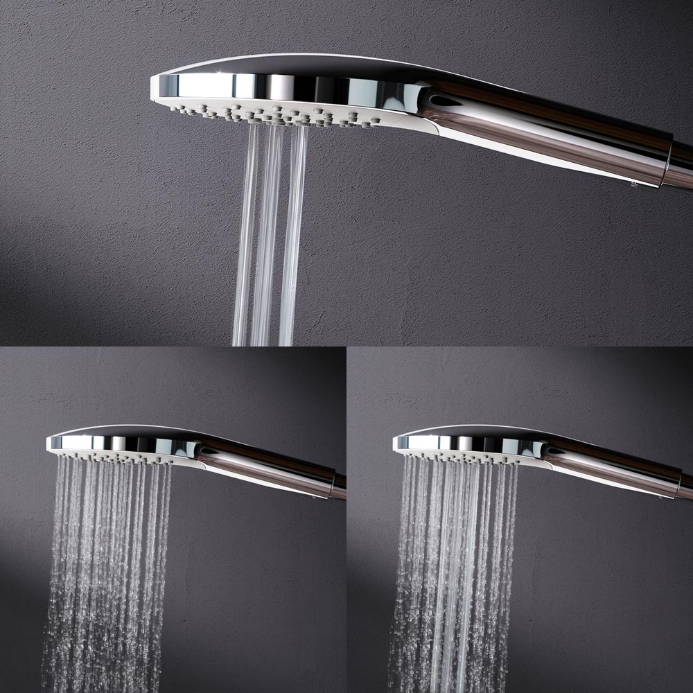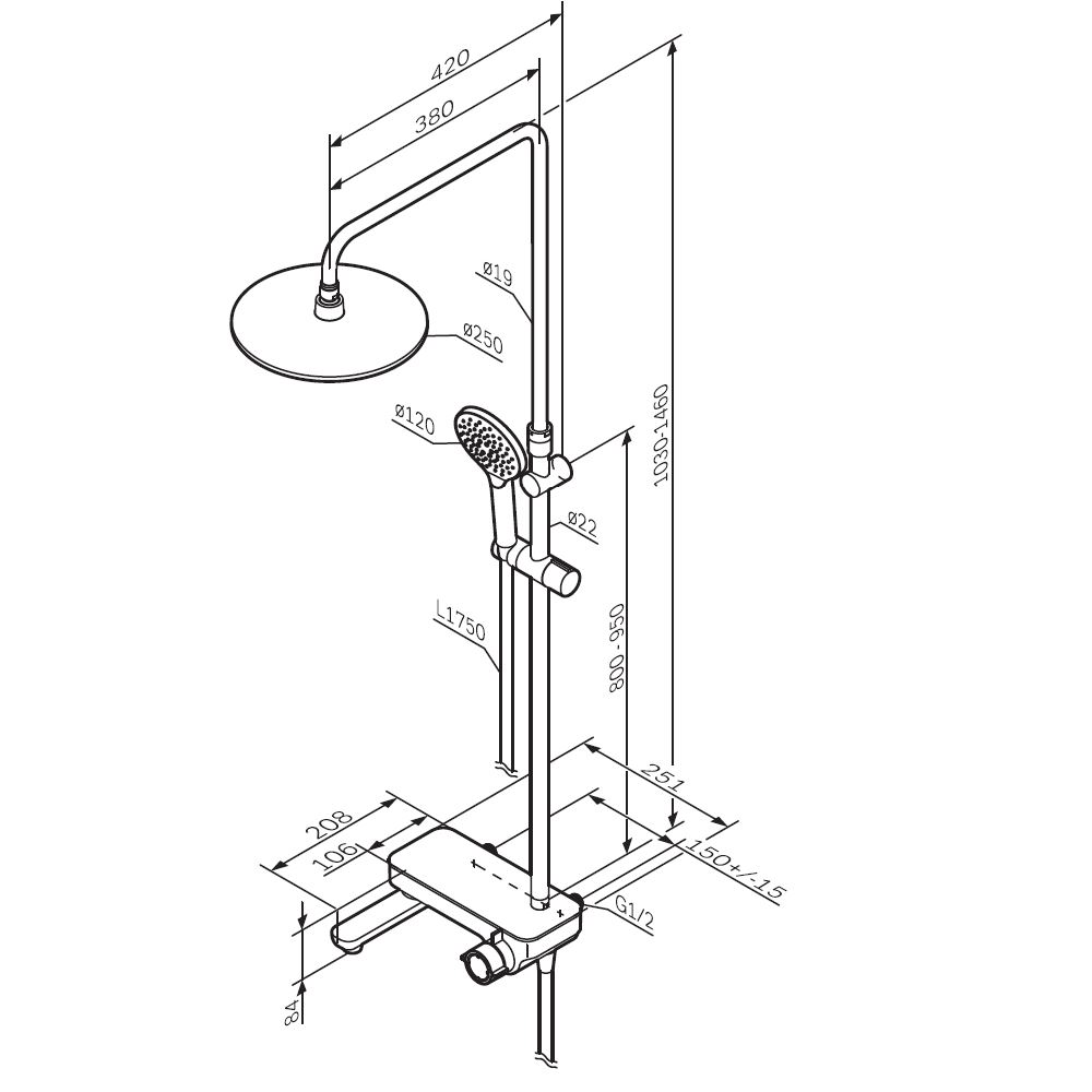 Премиальные размеры и продуманные детали: увеличенный диаметр душевых леек (верхний душ 250 мм и ручной душ 120 мм) позволит ощутить преимущества тропического душа тогда как увеличенная длина шланга 1750 мм обеспечит свободу движений во время принятия душа. Телескопическая поворотная штанга регулируется по высоте в диапазоне от 1030 до 1460 мм обеспечивая комфорт для людей любого роста а шаровой шарнир в держателе верхнего душа позволяет регулировать угол его наклона.
