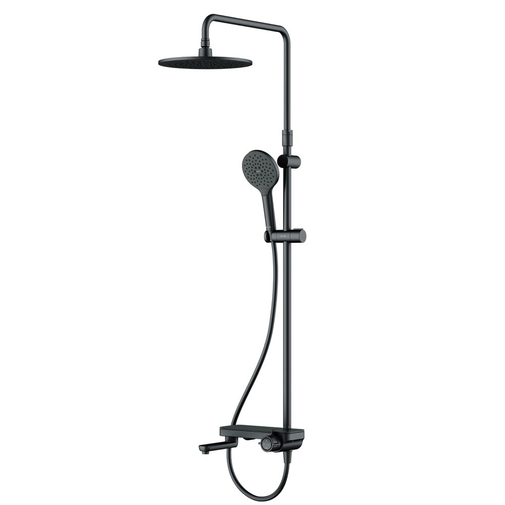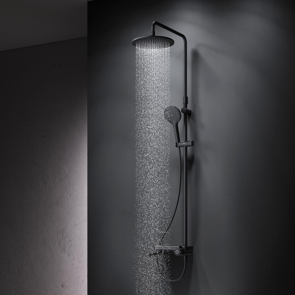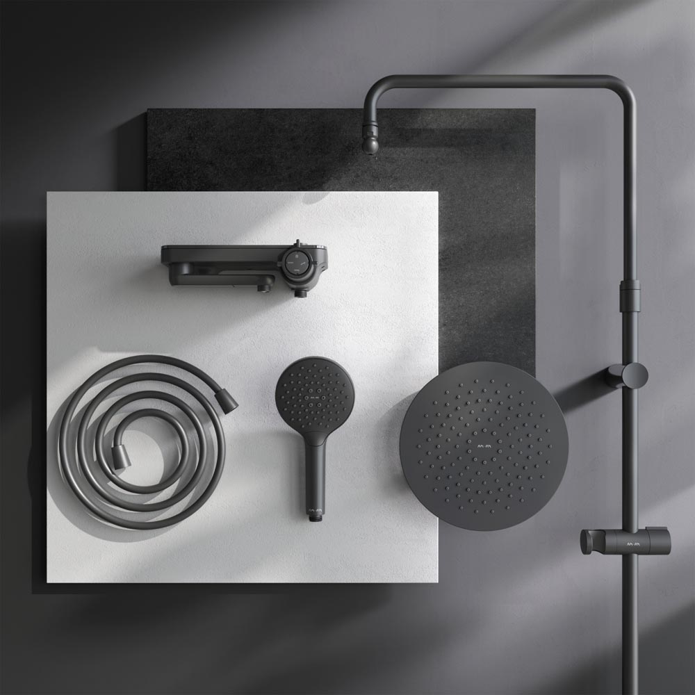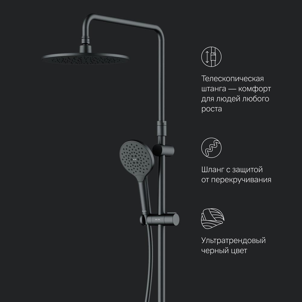 Премиальные размеры и продуманные детали: увеличенный диаметр душевых леек (верхний душ 220 мм и ручной душ 120 мм) позволит ощутить преимущества тропического душа тогда как увеличенная длина шланга 1750 мм обеспечит свободу движений во время принятия душа. Телескопическая поворотная штанга регулируется по высоте в диапазоне от 1030 до 1460 мм обеспечивая комфорт для людей любого роста а шаровой шарнир в держателе верхнего душа позволяет регулировать угол его наклона.