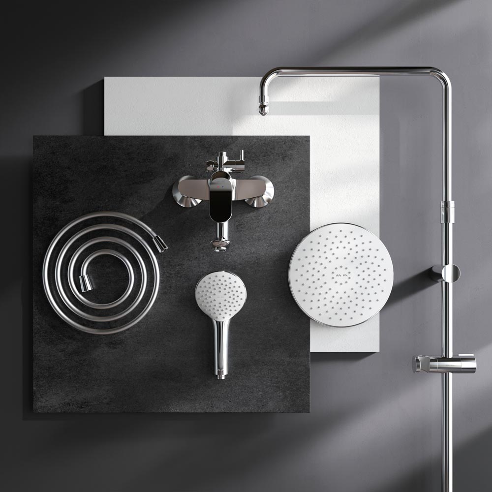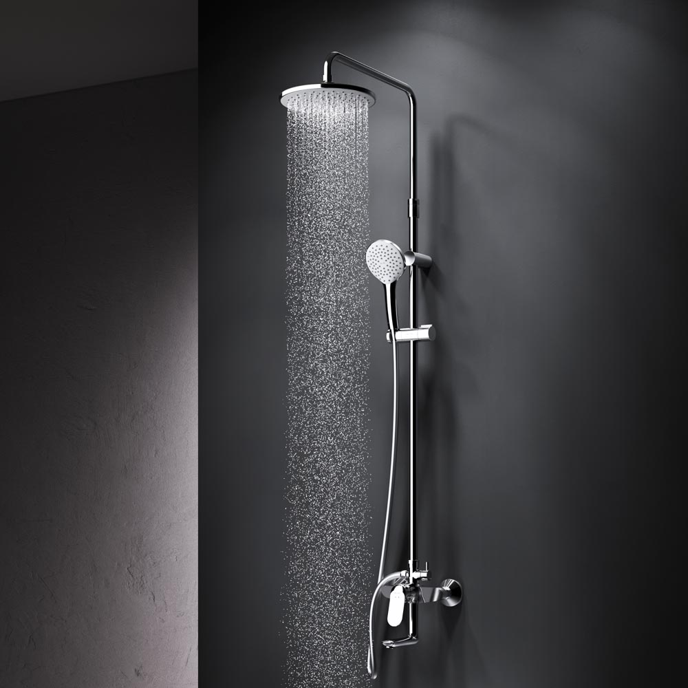 Диаметр душевых леек (верхний душ 220 мм и ручной душ 110 мм) позволит ощутить преимущества тропического душа даже в стандартной ванной тогда как увеличенная длина шланга 1750 мм обеспечит свободу движений во время принятия душа. Продуманные детали для удобства использования: телескопическая поворотная штанга регулируется по высоте в диапазоне от 1030 до 1460 мм обеспечивая комфорт для людей любого роста.