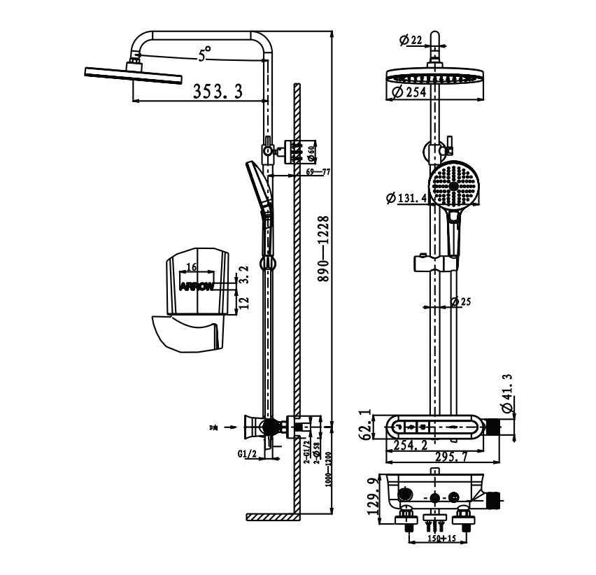 шланговое подключение/верхний душ/излив/душевой гарнитур/душевая стойка/переключатель потоков/смеситель для ванны с душем