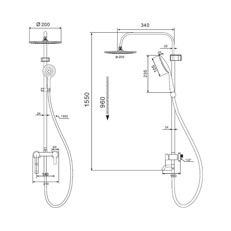 —Душевая стойка D-Lin D10A16 настенная цвет хром